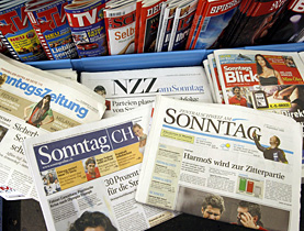 スイスでは1969年からドイツ語圏で大衆紙の日曜新聞が1紙ゾンタークスブリック ( SonntagsBlick ) ( 発行部数28万280部 ) が発行されていたのみで、長い間日曜日には新聞が無かった。1987年にドイツ語圏の大手新聞社のゾンタークスツァイトゥング ( SonntagsZeitung ) ( 発行部数20万1358部 ) が発行され、他社も追従するようになった。現在無料新聞を含め、ドイツ語圏では6紙、フランス語圏では1紙、ティチーノ州では2紙の日曜新聞が発行されている。