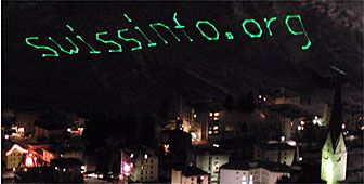25日の会議開催と同時に、インターネット(欧州からなら携帯からでも)でswissinfoの「Hello Mr. President」からダボス会議の出席者誰にでもメッセージを送ることができる。どうせ見てもらえないだろうって?心配御無用。送られたメッセージは、ダボス村を見下ろすボルゲン山のスロープに巨大なレーザー・レターとなって掲示される。そのイメージをウェブキャメがインターネットに送り返す。メッセージを貰った出席者は携帯から即座に返事を出せる、もし返事を出す気があるのなら。
