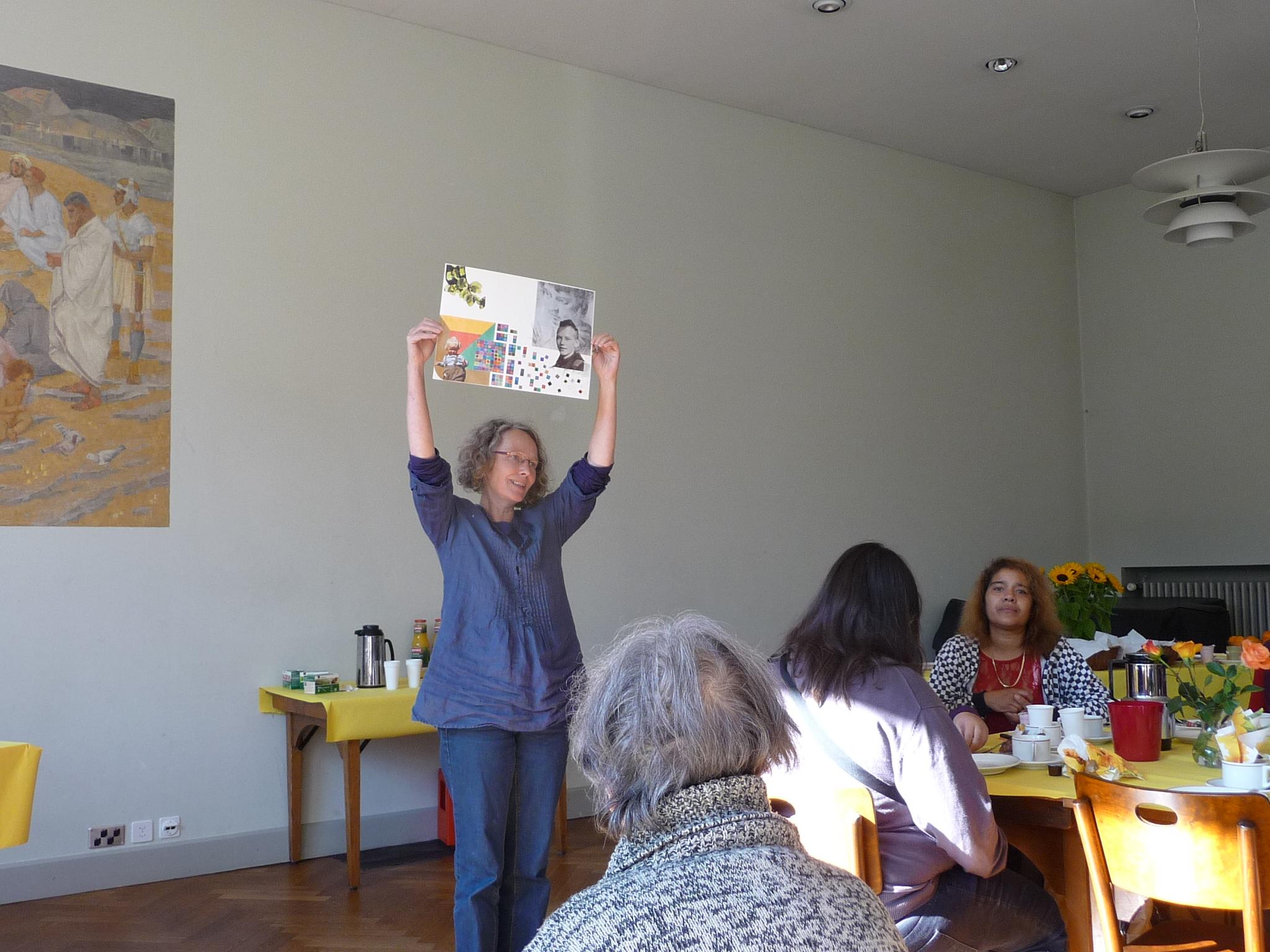 この女性はドイツ人。バーゼルで絵画を教えている。視覚に訴えながら、わかりやすいスピーチをしてくれた swissinfo.ch