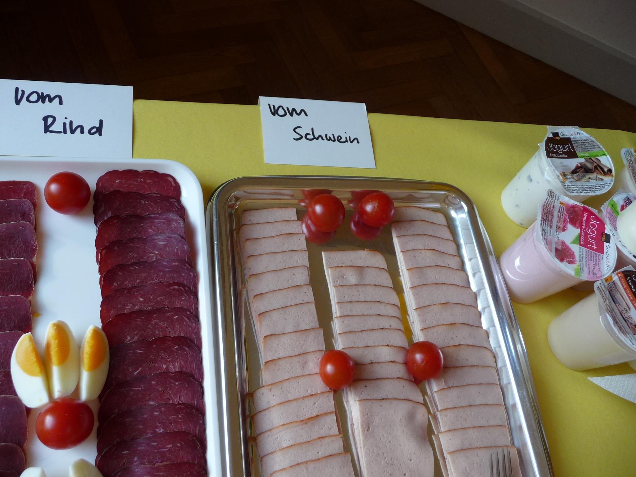 ハム、サラミ類。宗教上の配慮から、どの動物の肉かが明記されている swissinfo.ch