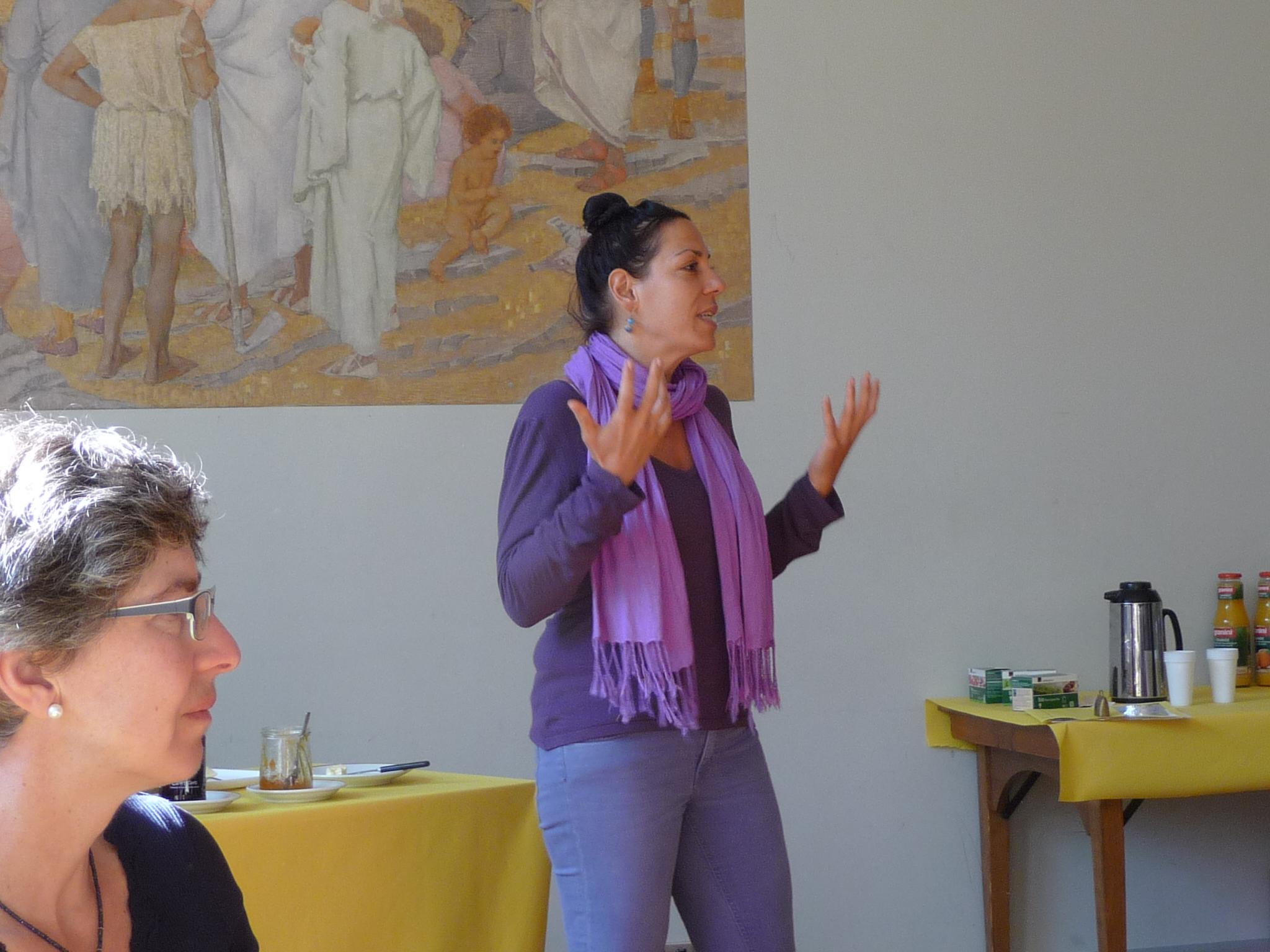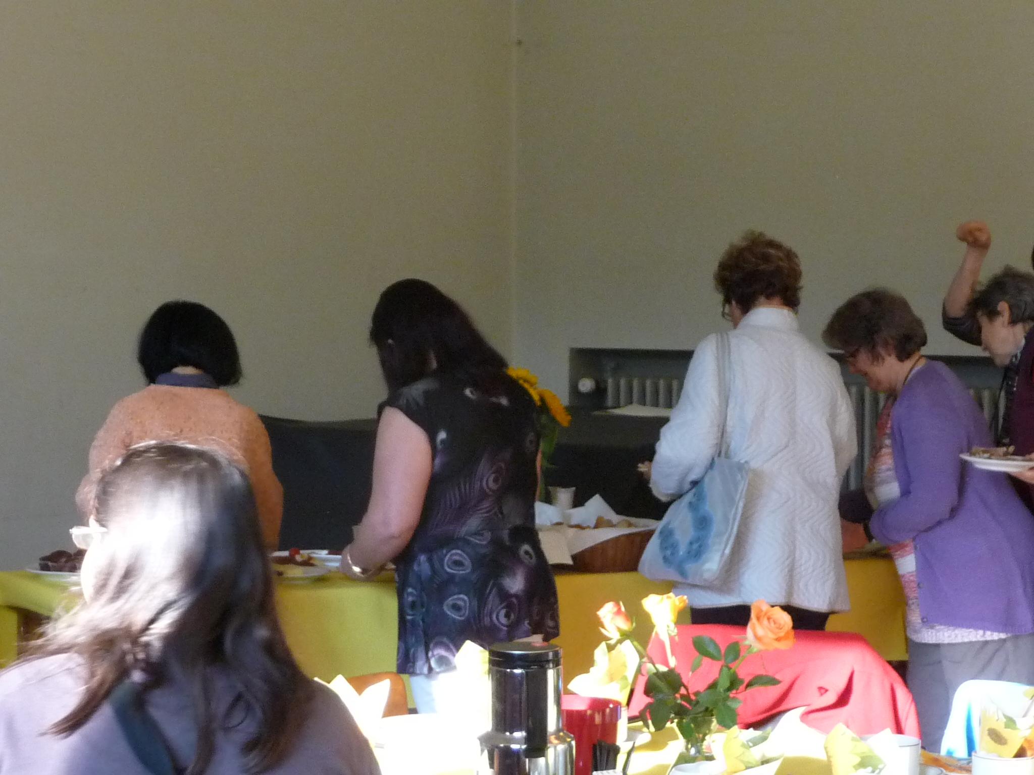 さて、歓談も一段落した、10時半ごろ。女性が1人ずつ前に出て、自身の半生や日常について、15分ほどスピーチをする。続いて、質疑応答。いつも2人と決まっていて、1人が外国人、1人がスイス人である。外国人のスピーチは、故郷の写真を見せてくれたりと興味深い。あるトルコ人女性は過疎地の出身で、水道はあるが電気も電話もない生活だったという。それで不便を感じないどころか、見たことがないから欲しいとも思わなかった、などと語っていた。