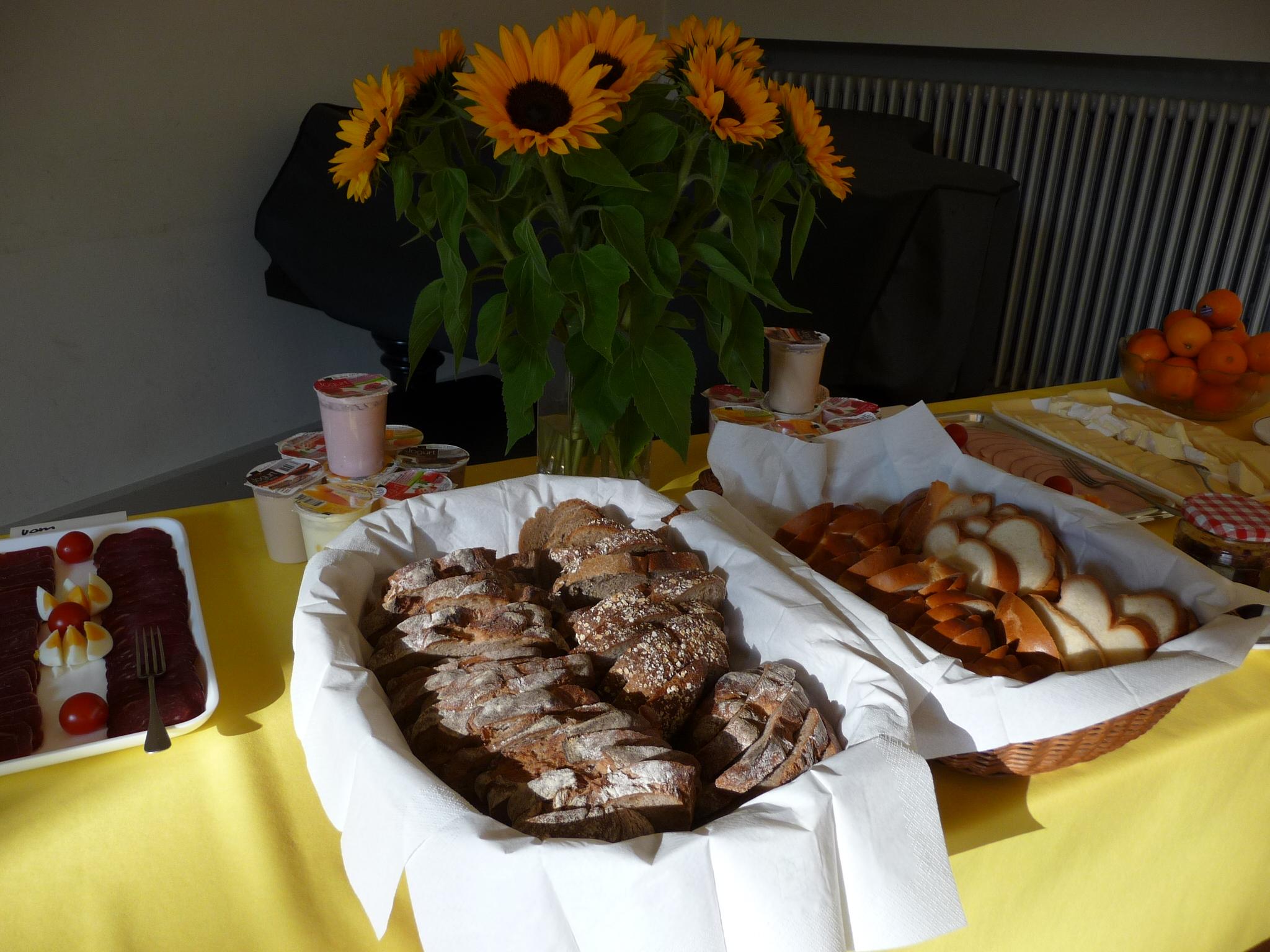 会の朝食は、ビュッフェ形式。私もここでは、典型的なスイスの朝食を楽しむ。すなわちクロワッサン、ツォプフ(バターたっぷりの三つ編みパン)、全粒粉パン、チーズ各種、ハム各種、トマト、ゆで卵、バター、ジャム、蜂蜜、ヨーグルト、フルーツ、コーヒー、紅茶、ハーブティー、ジュース……。