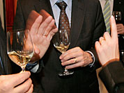 前全州議会議長ペーター・ビーリ氏 ( 中央 ) 、クリストフ・ランツ議員国会対策委員長、国民党ナタリ・リックリ氏の立ち話