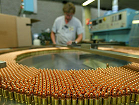 軍需企業「ルアク ( Ruag ) 」の弾薬部門。作業員が品質チェックを行っている Keystone