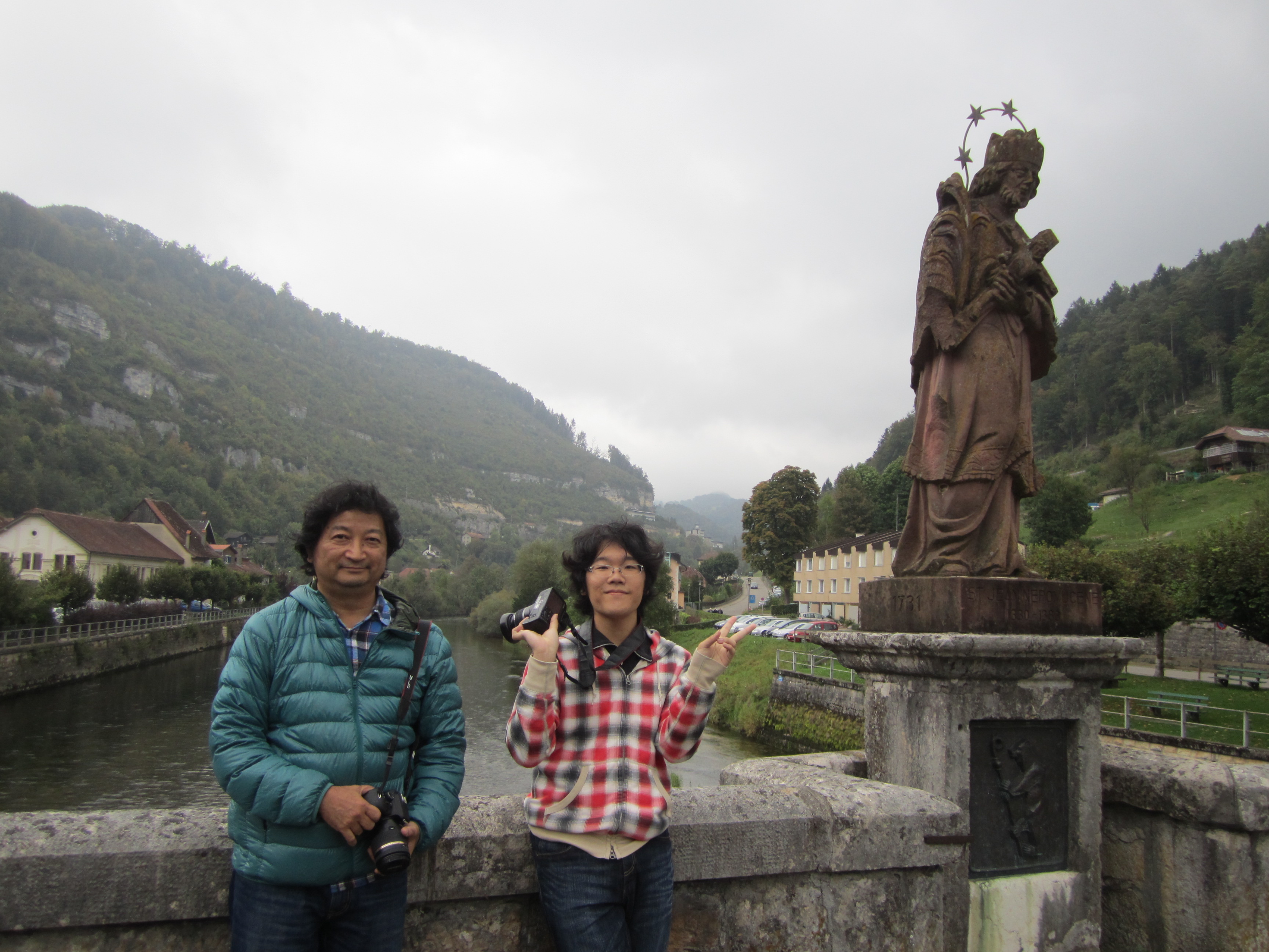 前年度来訪時の約束通り、仲本先生はこの秋、「人看板計画スイス編」準備のため、ジュラに戻ってきた。今回はご自分の生徒、同大学美術工芸学部デザイン専攻3年生の高野大(たかの・だい)さんを伴っていた。私はお2人のガイド兼通訳として、1週間弱ご一緒し、ジュラでもとりわけ仲本先生が愛着を持っているアジョワ(Ajoie、ポラントリュイを行政中心地とする地方)の市町村をまわった。