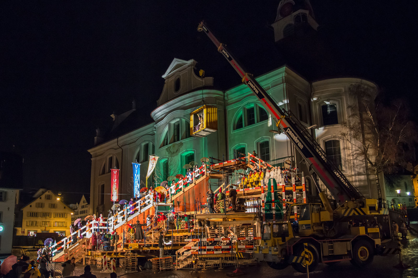 今年の題名は「Nii aber au(えー信じられない)」。話の中心は裁判で、さまざまな社会の対立が風刺される。作品には日本の大君ヘソヌソデ(Hesonusode)が登場し、架空のスイスの村イェド・シュヴィーツ(Yeddo Schwyz)の村民たちの様子を静かに見守る。