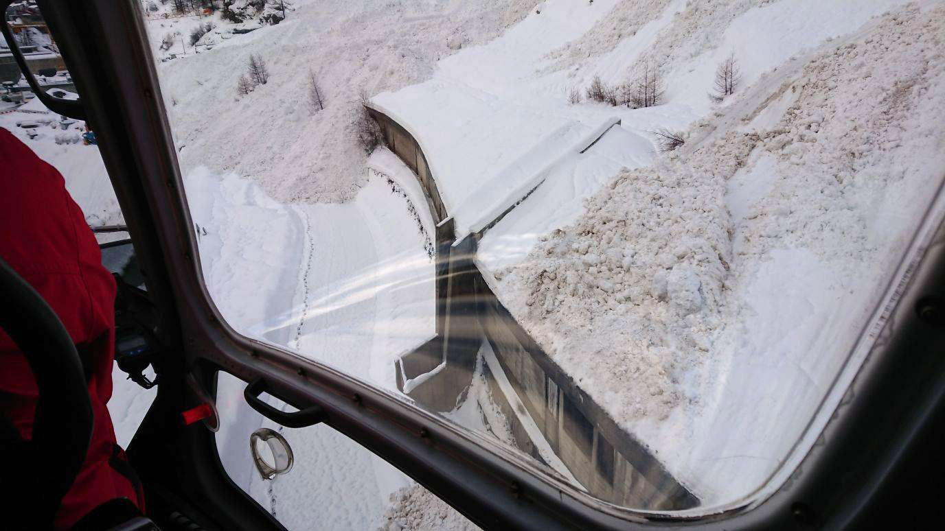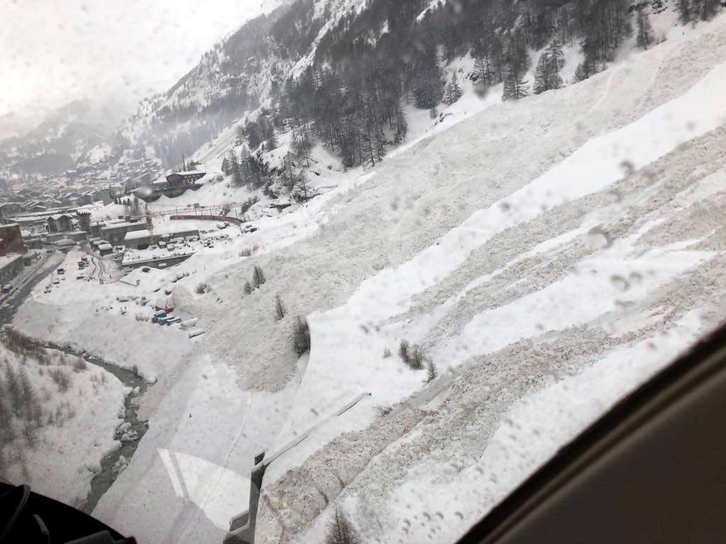 スイス南部ヴァレー(ヴァリス)州で4日、雪崩が発生。被害の様子を空撮写真がとらえた。
