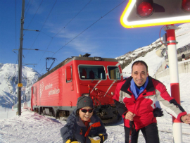 ここ数年毎年行っているお隣グラウビュンデン州のセドゥルン(Sedrun)地区のスキー場は、縦長のスキー場で、人が少ない上に雪質も良く、初級・中級向けのやや広めのバーン。私と知り合ってからスキーをするようになった主人が滑りやすいと気に入りよく行くようになりました。さらにリフトや電車に乗れば、アンデルマット(Andermatt)まで走行距離125kmを楽しめる、醍醐味のあるスキー場へと様変わりします。昨シーズンはセドゥルンにアパートを借り、スキー目的で年末年始に遊びに来た母と1週間「なんちゃってスキーヤー」を楽しみました。そのときの様子を少しご紹介しましょう。
