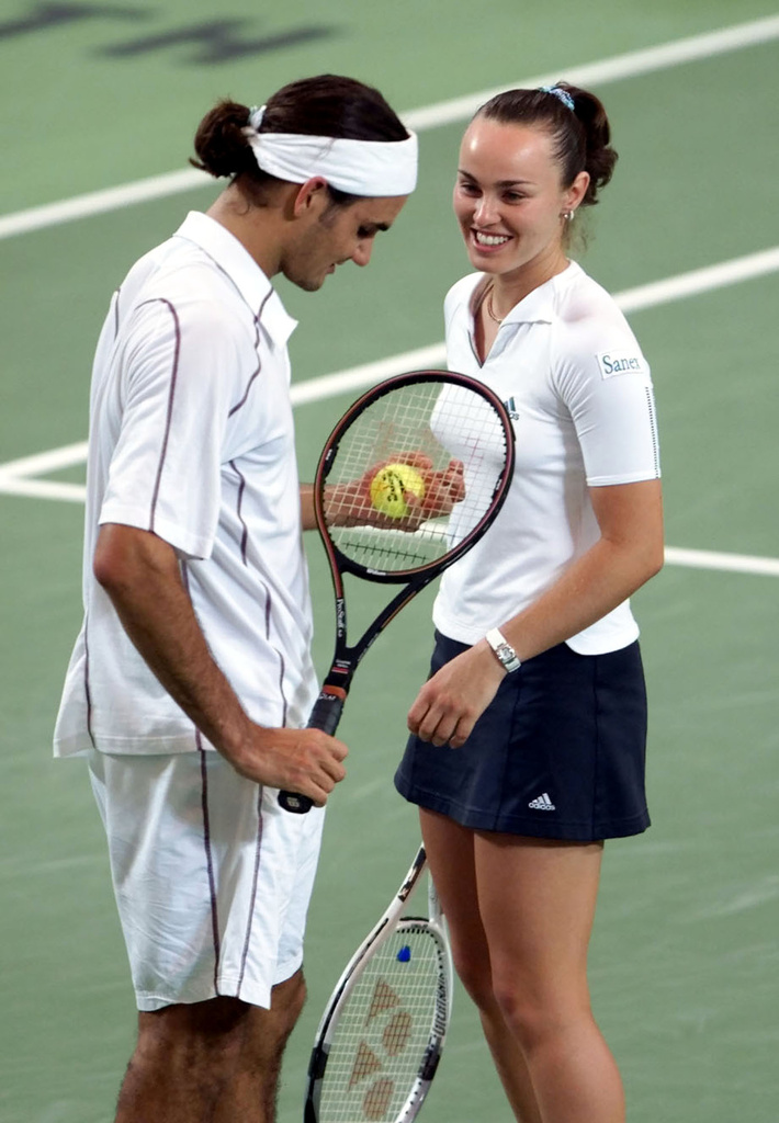 2001年オーストラリアで開かれたホップマンカップで混合ダブルスを組み、優勝を果たしたフェデラー(左)とヒンギス。ロンドン五輪で最強ペア再結成が期待されていたが… Keystone