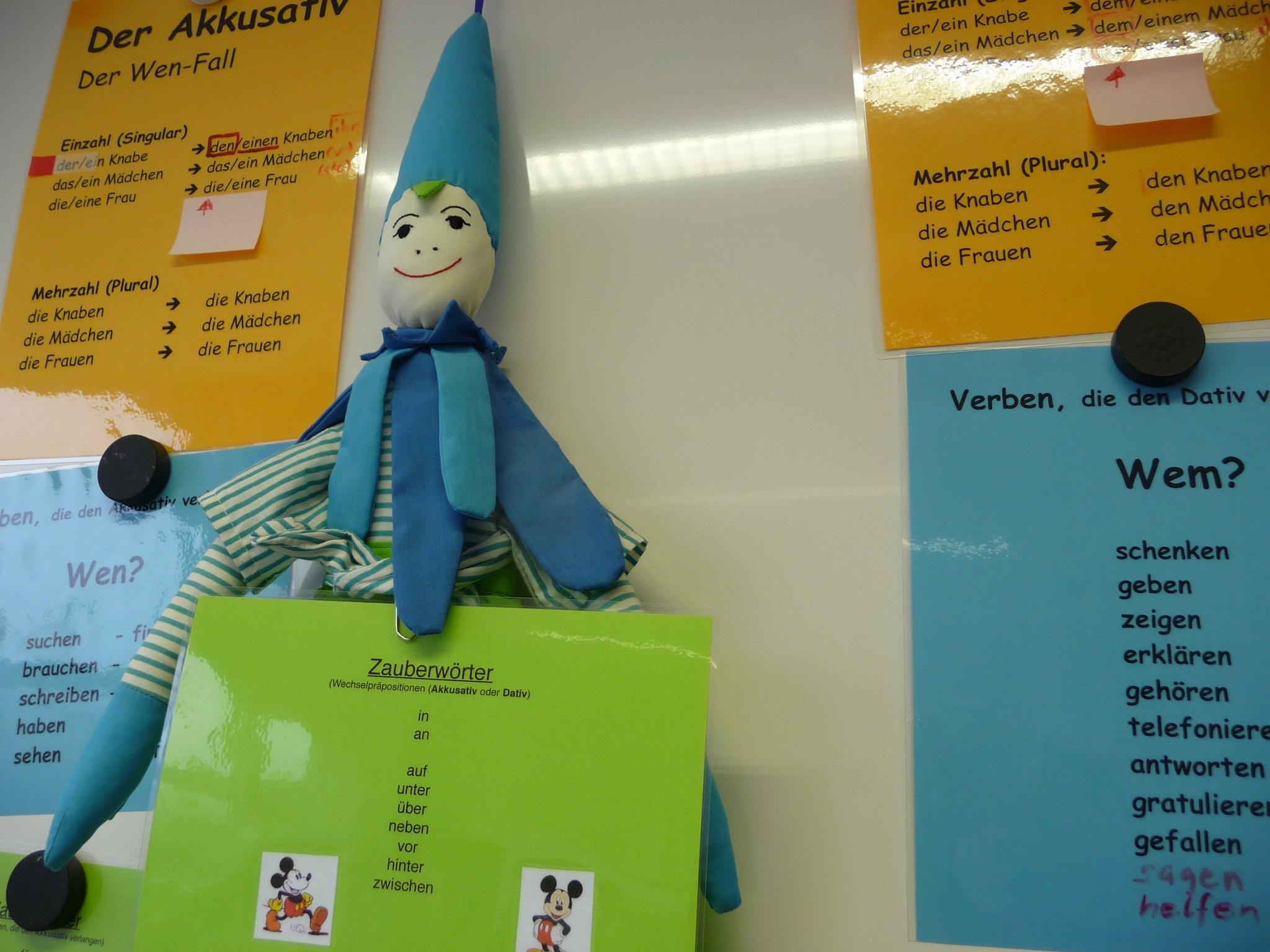 4時間目になると、6年生が2人来た。各自が文法ワークや作文などに取り組む。他の児童がドイツ語の授業を受けている場合、ここDaZでもできるだけ同じ内容を扱い、遅れをとらないようにという配慮だ。