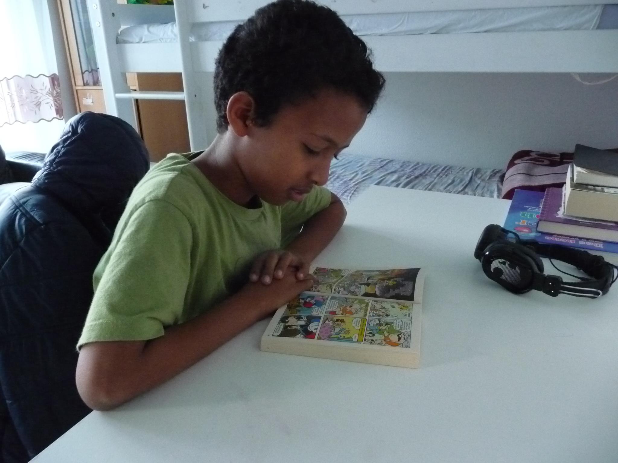 彼らの母国語ティグリニア語は独自の表記法を持ち、ドイツ語とまったく異なる言語だ。べルック君も、家庭ではティグリニア語を話している。しかし最近は、5年生のお兄ちゃんナホア君とドイツ語で話すという。ナホア君は、「ドイツ語のほうが知っている言葉が多いから、いろんなことが言えるんです」と、はきはき答えてくれた。