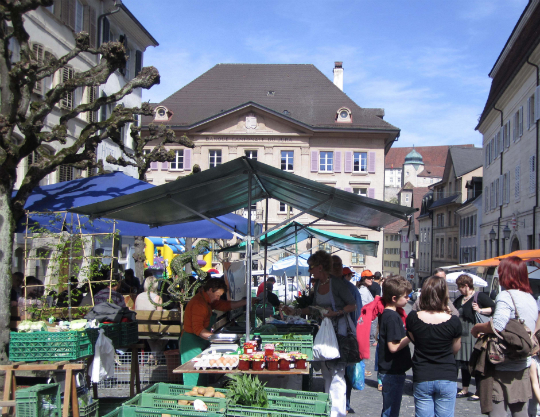 中世ヨーロッパの時代、自由都市と公に認めるにあたり、定期的に市場を催すだけの財力・活力を町に求めたことはご存知だろうか。ポラントリュイの歴史を紐解いてみると、かつて市場は町の形成と発展になくてはならない一大施設であり、重要な行事でもあったということが分かるが、それは、現代社会に於いても不変であると言える。