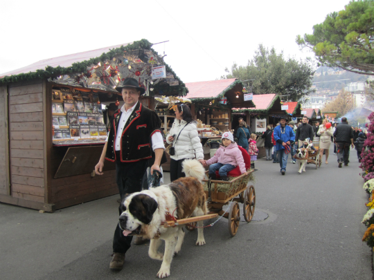 11月末、初冬のモントルーは、一ヶ月間にわたるクリスマスマーケットで、よりきらびやかさを増す。スイス各地はもとより世界中から42万人もの観光客が訪れるが、私が過ごした週末、レマン湖畔の遊歩道上と大通りには合計150もの小屋が並び、特に日曜の正午頃からは、すれ違うのも一苦労するほど大勢の見物客で溢れ返っていた。「世界各地の金持ちが集う保養地」と形容されがちなモントルーだが、それはほんの一側面で、実際は、その地理的美しさだけでなく、数々の行事でなにびとをも魅了し楽しませてくれる。