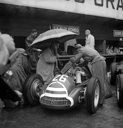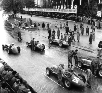 1934年から1954年まで、ベルンでは今日の世界選手権に匹敵するサーキットレースが開催されていた。全長7.3キロメートルのコースの沿道には10万人もの観客が詰めかけた。しかし、フランスのル・マン ( Le Mans ) で81人が死亡するという事故が起こった後の1955年、スイスではこのレースが禁止された ( 写真: Collection Adriano Cimarosti/RDB/ATP)