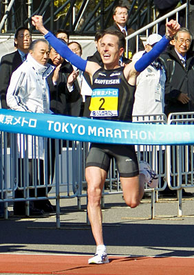 東京で優勝したロスリン選手は、マラソンに熱狂的な日本で英雄になった。