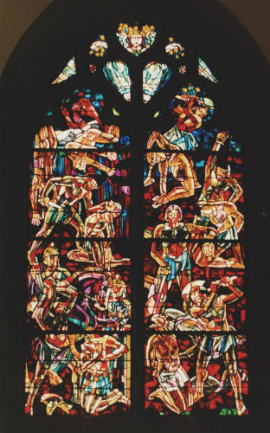 最後は3世紀末、ローマ時代のヴァレー/ヴァリス州、サン・モーリス(当時はアガウヌムと呼ばれていた)での出来事です。ローヌ谷はこの町で谷幅が極端に狭くなっていることから、軍事上の大切なポイントになっていました。ここに司教座聖堂参事会長だったモーリス指揮下、アフリカ、テーベ(Thebes)で徴兵された6,600人のローマ軍団が駐在していたのですが、彼らがキリスト教禁教令を守っていないことを理由にローマ本国の軍団に虐殺されてしまいます。その中に虐殺を逃れたフェリックスとレグラ(Felix, Regula)という兄妹がいました。二人は命がけでローヌ谷を逃亡しましたが、チューリヒで捕まり斬首されます。現在、サン・モーリスの教会はスイス最古の教会として知られており、教会内には虐殺、殉教を物語るステンドグラスがあります。チューリヒでは「グロス・ミュンスター・カテドラル」とカトリック教会「聖フェリックス・レグラ教会」がフェリックスとレグラに関係のある教会になっています。