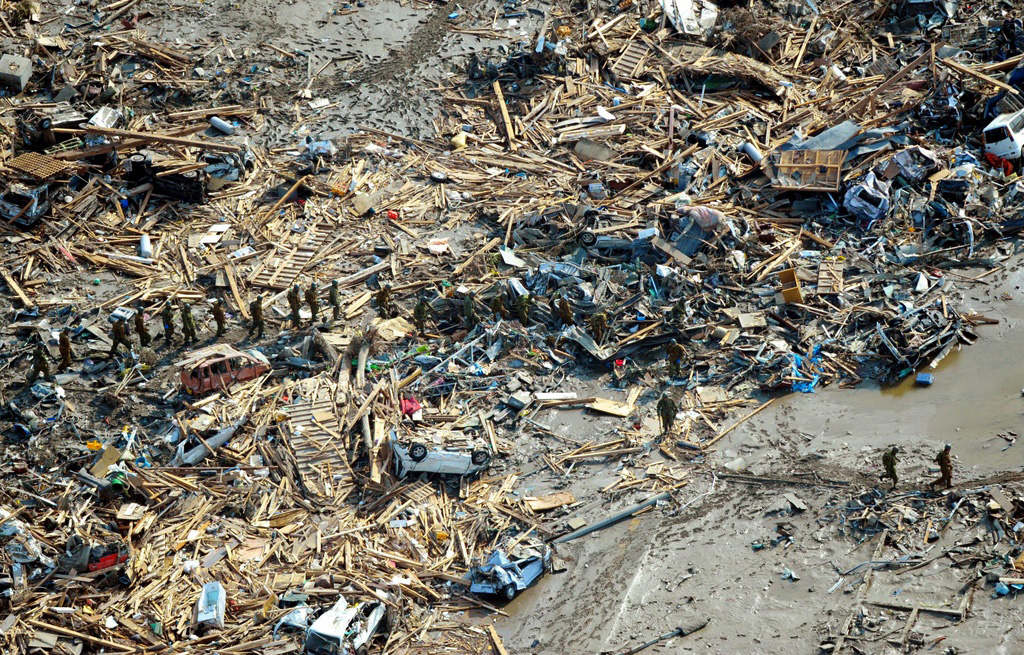 2011年3月9日、東北地方を10メートルを超える津波が襲い、巨大な破壊の爪あとを残した。津波はマグニチュード9.0の大地震が引き起こし、沿岸の人々も車も船も、家屋も農家も畑もすべてを引きさらっていった ( 写真:Reuters, Keystone, AFP )