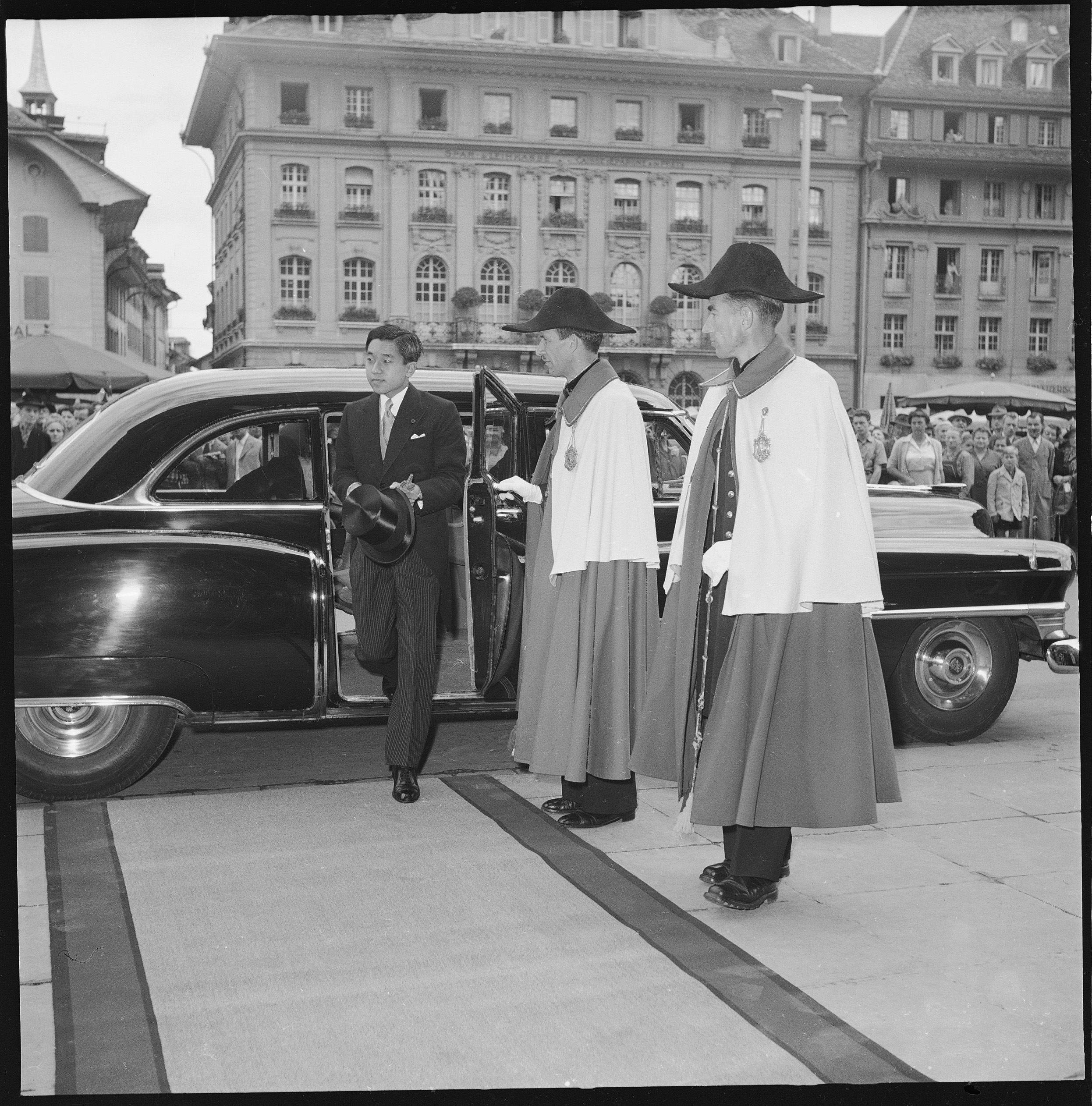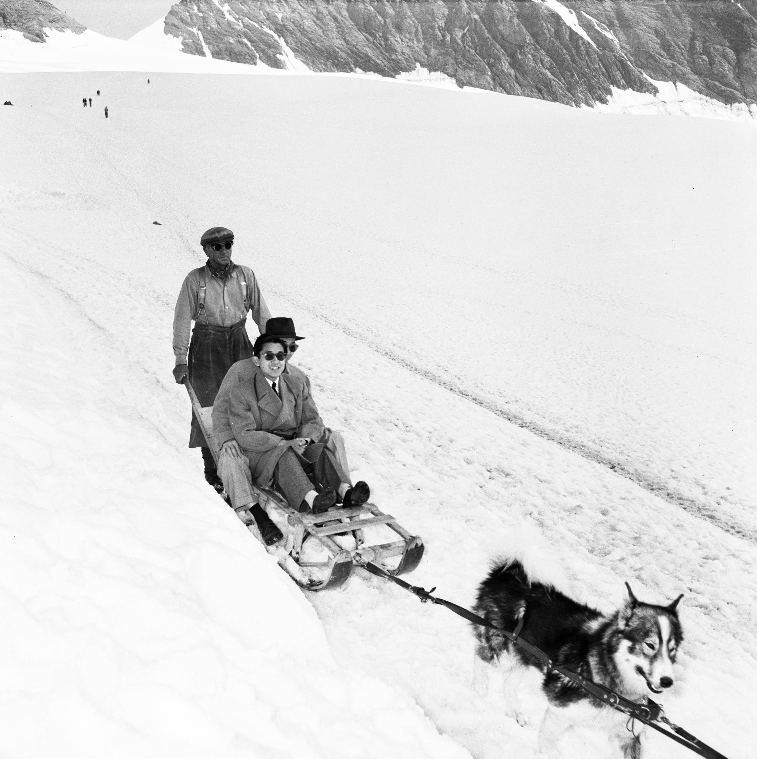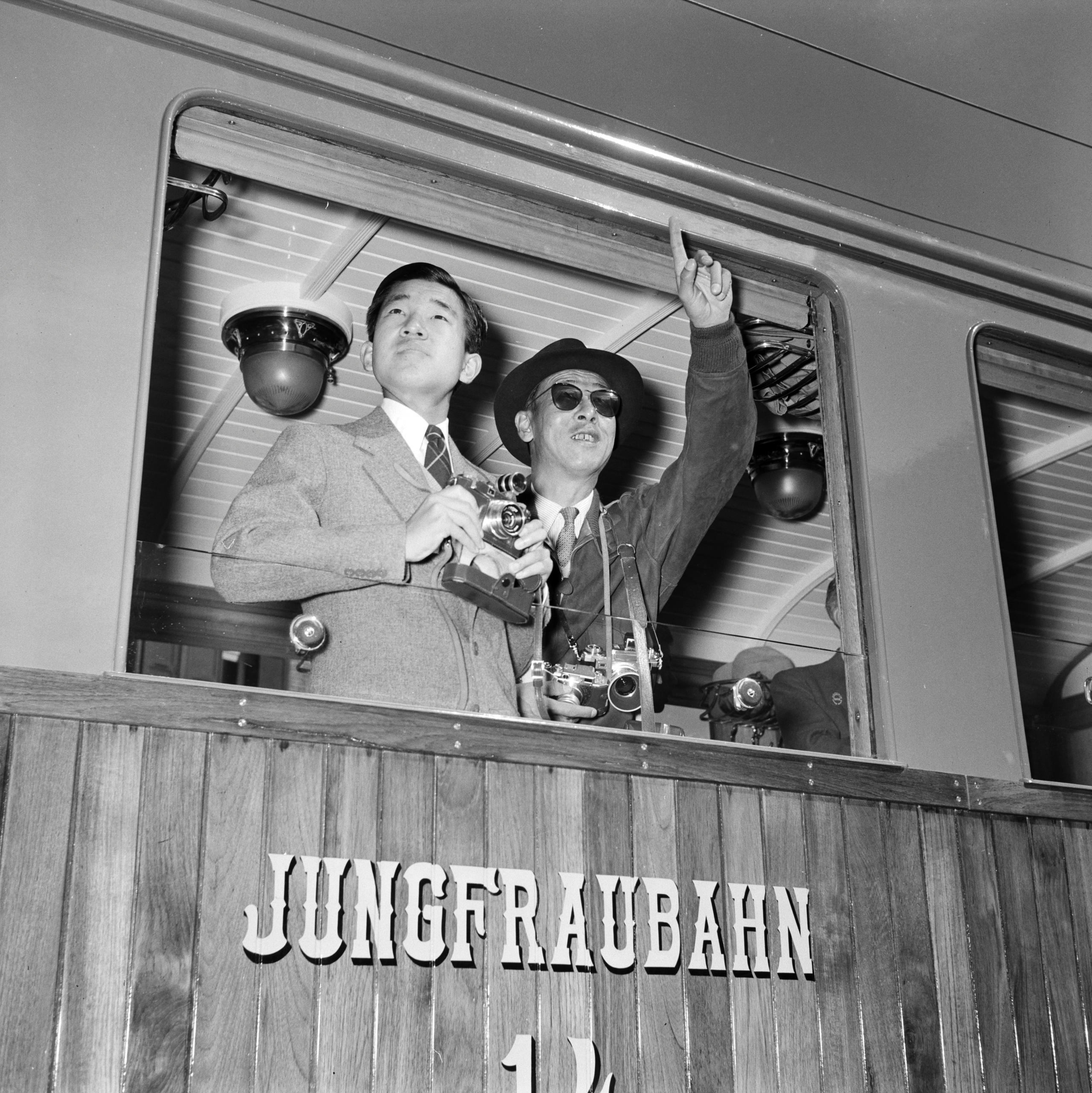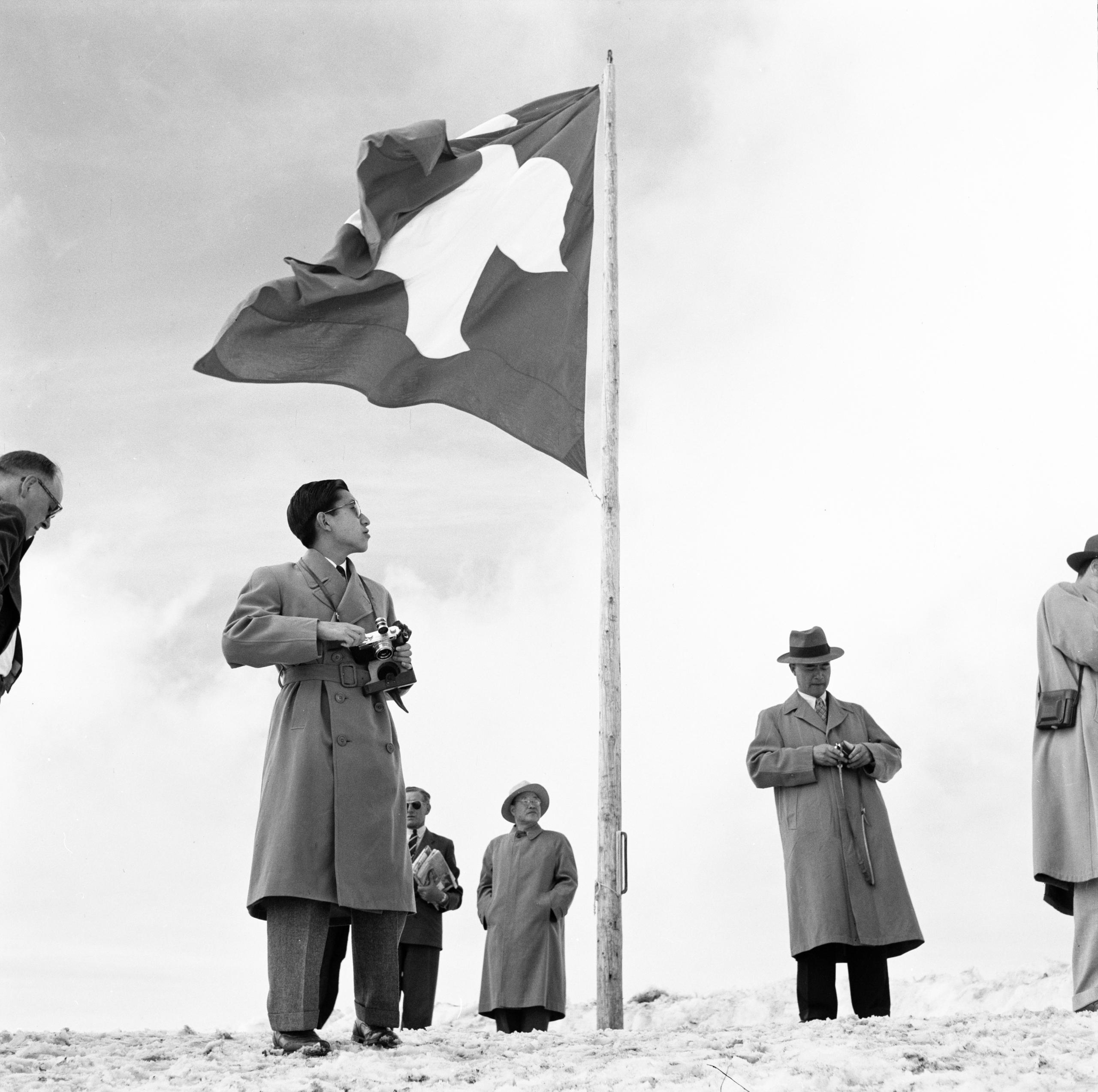 1953年の3月末から10月にかけ、天皇陛下は皇太子殿下としての初めての外遊にアメリカ・カナダ及び欧州12カ国を歴訪。スイス訪問は、同年の9月だった。ユングフラウヨッホで犬ぞりを楽しまれたのはこのとき。スイスが誇る高山鉄道の一つユングフラウ鉄道にも乗車された。