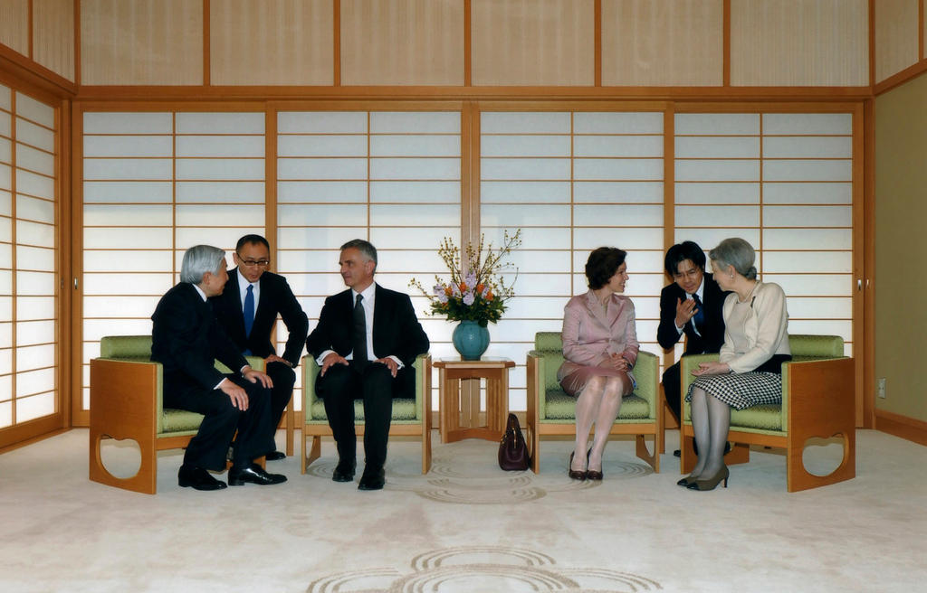 最後の一枚は、2014年2月にスイスのディディエ・ブルカルテール元大統領が天皇皇后両陛下を皇居に訪問したときの写真。