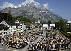 スイスにはこのような直接民主制が残っている州が2つある。グラールス州とアッペンツェル・インナーローデン準州(Appenzell Innerrhoden)だ。屋外の広場に集まって、挙手で投票する原則は両者とも同じだが、それぞれ独特の地方色がある。