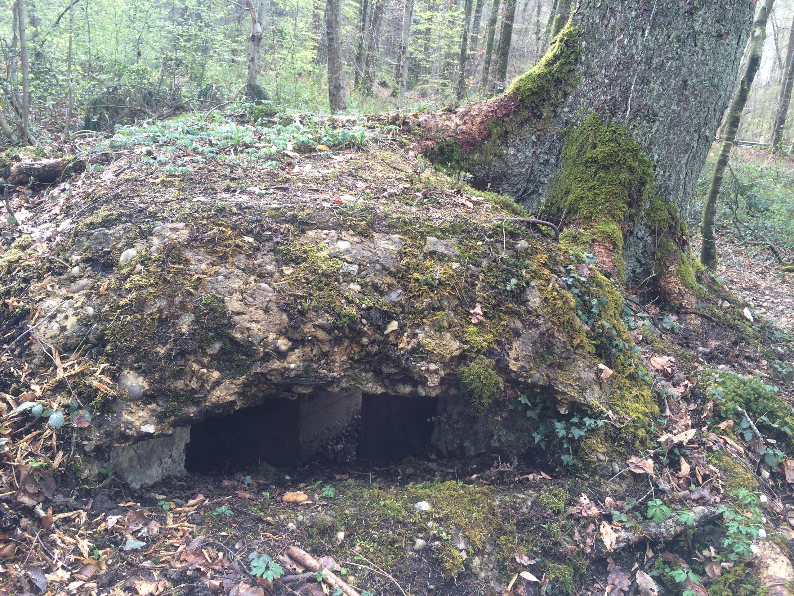 道路を横切って林の中に入ると、すぐにドイツ軍のコンクリート製トーチカ跡が現れた。