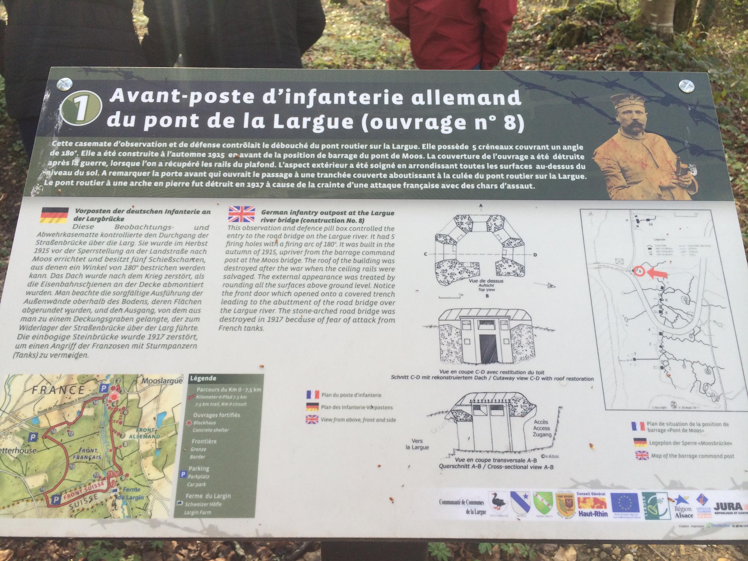 そして遂に、去年の7月20日、友好協会の努力が実った形で、第一次世界大戦中のドイツ・スイス・フランス3国の軍事配備を学ぶ散歩道が開通した。道や施設の整備には、この地域に接するスイス・フランスの村々の経済的援助やスイス軍工兵隊による土木工事など、数多くの人々が携わっている。