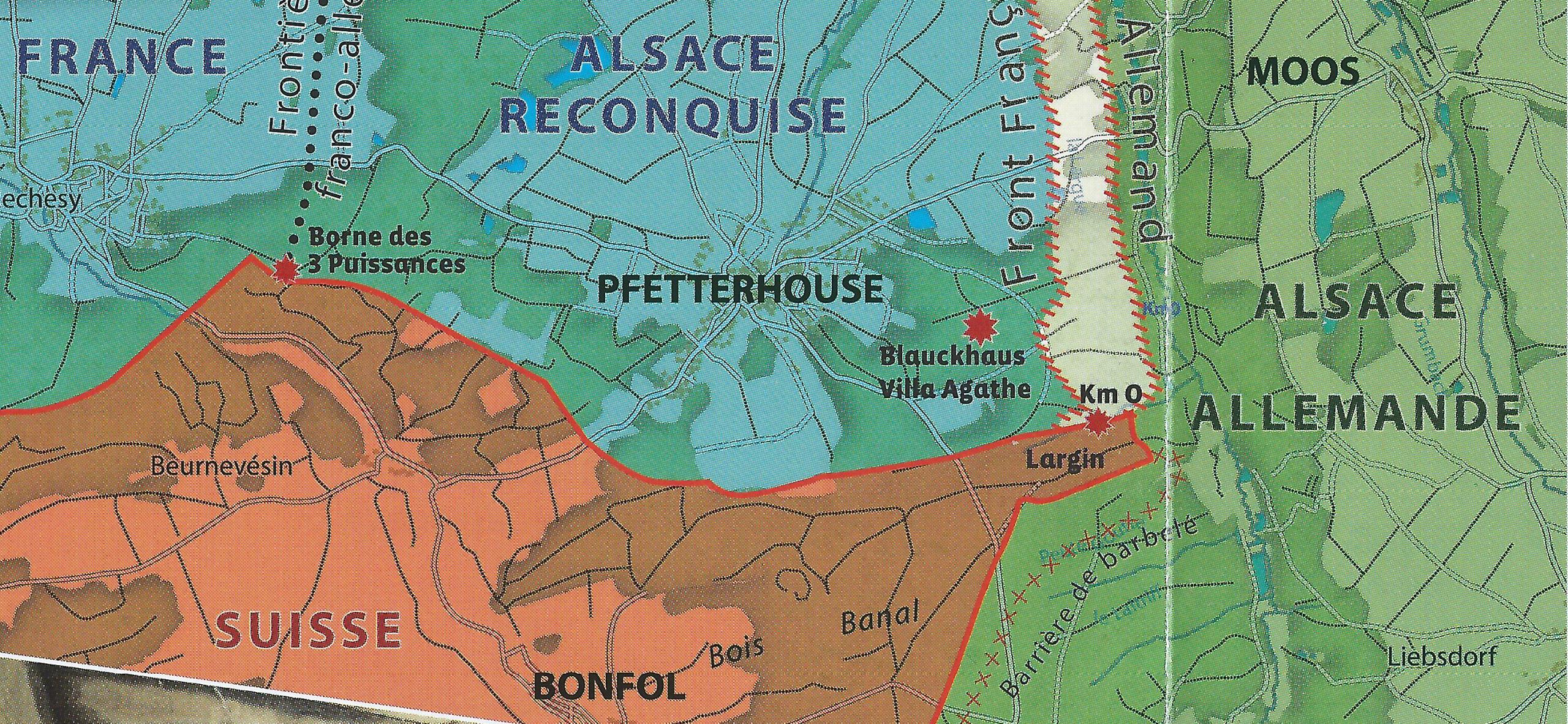 (フランス側のコンクリート製軍用建築物は、たった1つ。カムフラージュのために「ヴィラ・アガット(Villa Agathe)」と、いかにも邸宅風に呼んだ1918年建造の小要塞が現存する。上記地図を参照のこと)