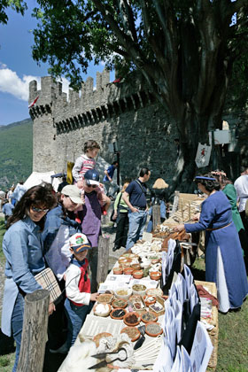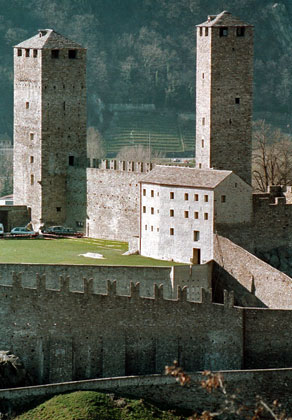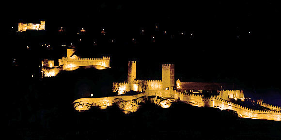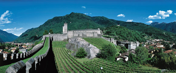 カステルグランデ ( Castelgrande )、モンテベッロ城 ( Castello di Montebello ) 、サッソ・コルバーロ城 ( Castello di Sasso Corbaro )。これらベリンツォーナの3つの城塞は、2000年にユネスコ世界遺産に登録された。それ以来、この中世の城塞のお陰でティチーノ州の州都、ベリンツォーナでは観光ブームが起こった。これらの城はスイスにおける中世の城塞建築において最も重要なものだ。