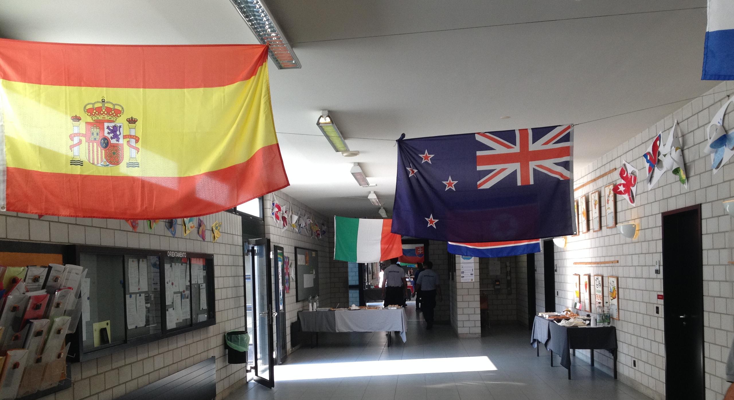 どんな国の子どもがいるかと言えば、ティチーノ州はイタリアに隣接していますので、やはりイタリア人が多く、続いてポルトガル、セルビア出身の子が多いそうです。そのほかにも、中南米からはドミニカ共和国やブラジル、コロンビア、北アフリカ・中東地域のモロッコ、チュニジア、トルコ。ヨーロッパ圏ではスウェーデン、ドイツ、スペイン、フランス、クロアチア・・・全校生徒400人で30カ国を超える国の子どもが在籍しているそうですから、学校の中はまさに人種のるつぼ、多文化社会スイスの縮図を見るようです。ちなみにアジア地域は地理的に遠いこともあって、少数派です。特に日本人は見るのも初めてという子が多く、日本の学校は全員で揃ってお昼ごはんを食べる「給食」があるとか(スイスでは家に帰って食べます)、生徒自身が学校の掃除をするなどといった話は、彼らをかなり驚かせたようです。