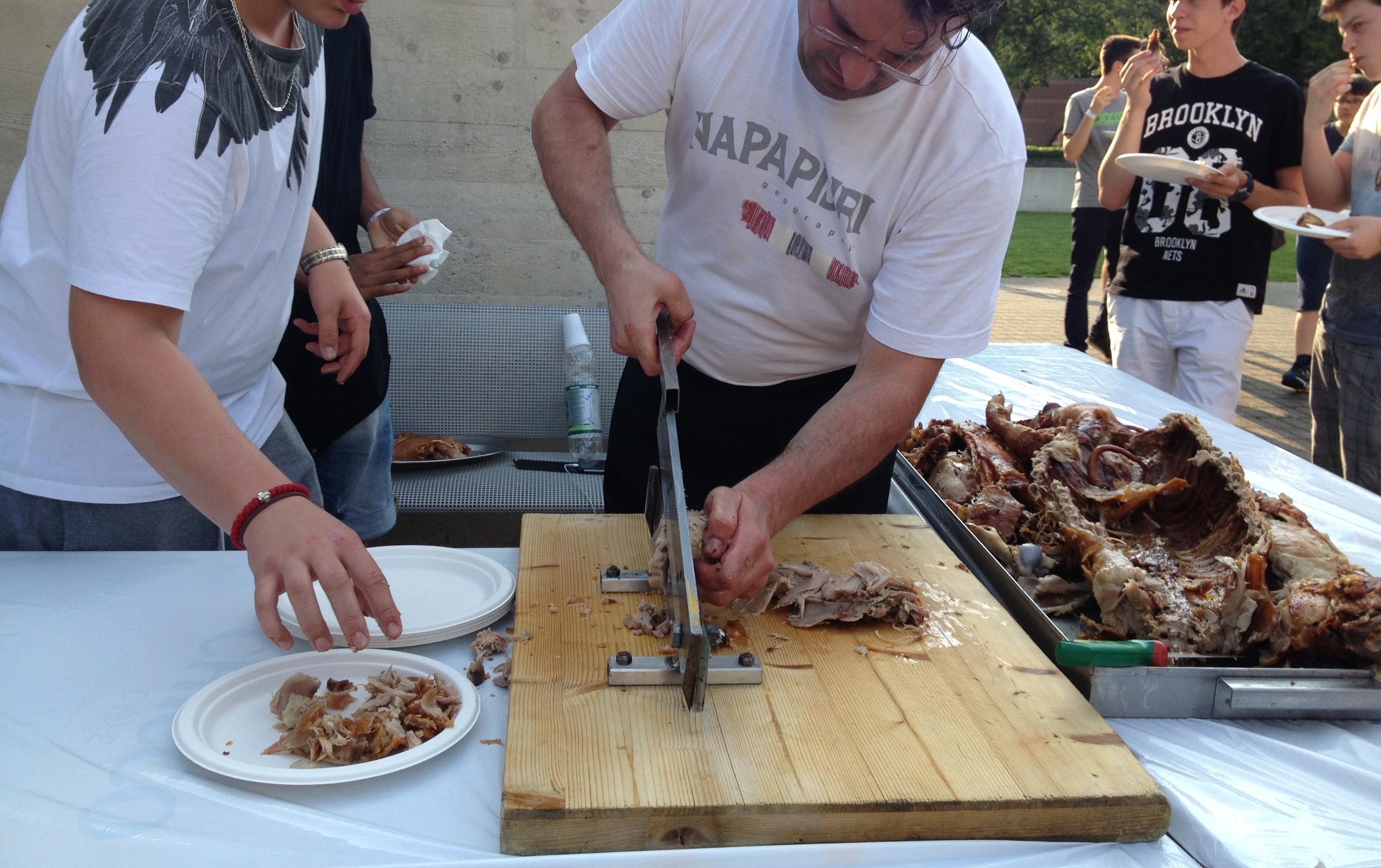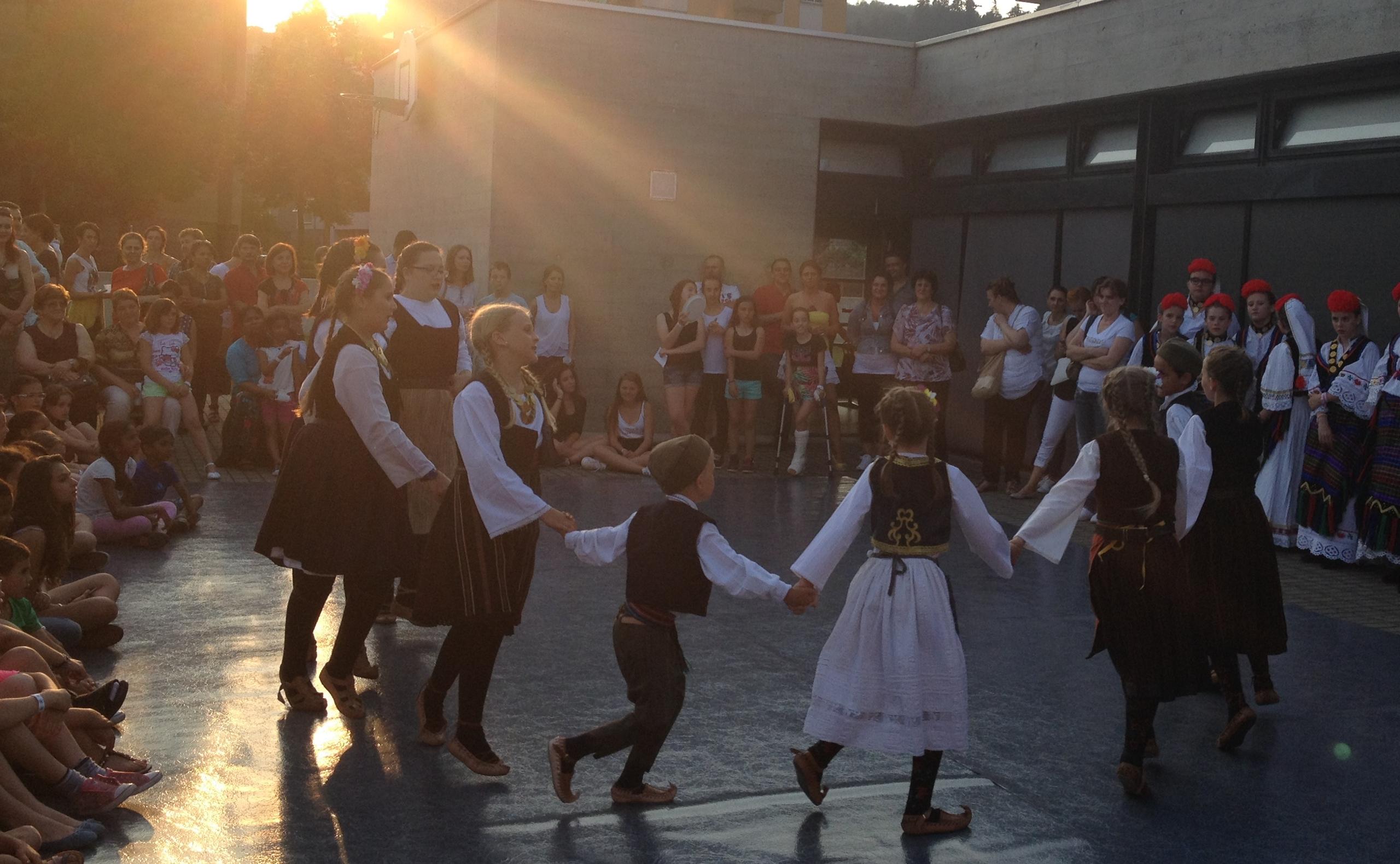 フェスティバルの日は、学校は午前中で終了です。夕方の開始時間に向けて、校舎には各国の国旗が飾られ、教室や中庭いっぱいに料理が並びます。在校生400人のお料理ですから、その量は圧巻です。初めて知る国名に、見たこともない食べ物。世界はこんなにも多彩なのだと、大人ながらわくわくします。6月のスイスは夏時間で、夜9時を過ぎてもまだ明るい季節。思春期の彼らにとって、夏休みを控えた開放的な気分の中、友だちと過ごす夕べは、ちょっとした一大イベントです。クラスメイトに自国の料理を披露したり、友だちの説明を聞きながら、見知らぬ料理をちょっとこわごわ口にしてみたり。あちこちで笑いと感嘆の声が上がります。様々な国の子どもがいるように、彼らがここにいる理由も様々です。親の仕事の都合という子もいますが、戦争や宗教、民族問題で国から逃れてきた子たちもいます。言葉も、文化も、背景もまったく違う、クラスメイトーー多感な年齢の彼らにとって、こうした経験は心のどこかに残り、多文化社会を柔軟にたくましく生きていく力を育んでいくのだと思います。
