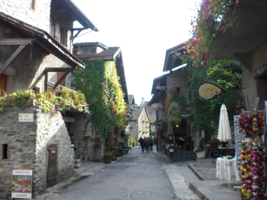 コンサートの前にレマン湖南岸にある「中世の村イヴォアール」を訪ね、半日程過ごした。イヴォアールへは対岸のニヨン(Nyon、スイス)から連絡船を使って30分で行ける。素通りすれば、わずか20分で全部歩けてしまうほどの小さな村だが、14世紀頃のたたずまいが残されており、誰しもが絶賛するロマンチックで静かで美しい村だ。素朴な石造りの家々は沢山の花で美しく飾られ、人目を引く珍しい建築の教会と、港近くにある古城が印象的。この古城には今でもその末裔が住んでいるそうだ。お天気が良ければ、丘の上にあるレストランのテラスでレマン湖を眺めながら美味しいフランス料理が楽しめる。レマン湖でとれた新鮮な魚介料理もおすすめだ。