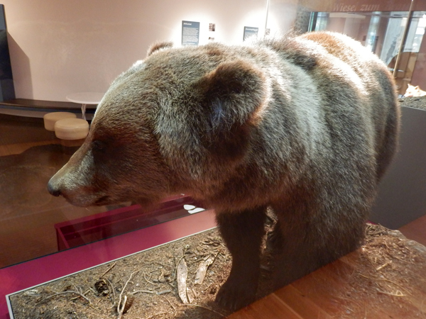 州都のクールにある州立自然博物館には、JJ3の剥製が展示されている。ここを訪れる子供たちは、自宅の近くでもときどき見られるイエネズミやハリネズミなどと一緒に、アイベックスや鹿、それにJJ3の剥製も見て回る。ここに人間の都合で射殺された熊を展示する事には大きな意義があると思う。単に「これが熊か」「これが鹿なんだね」という知識を得るためだけでなく、どうやって野生動物と同じ地域を住み分けていくのかを意識して話し合う事が重要だ。これ以上、人間の都合で野生動物の命を失わないで済むようにと、剥製になってしまったJJ3を見ながら願った。