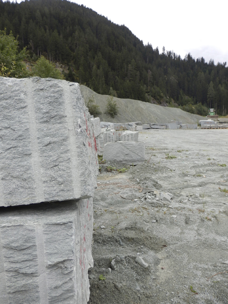 グラウビュンデン州を代表する花崗岩も見ることができる。アンデール(Andeer)で産出される淡緑色の花崗岩だ。グラウビュンデン州では床や壁、噴水から紋章に至るまで、この美しい岩がよく使われている。土産物屋でもロウソク入れや文鎮などに加工されているものをよく見かける。もちろん日本をはじめ海外にも輸出されている。