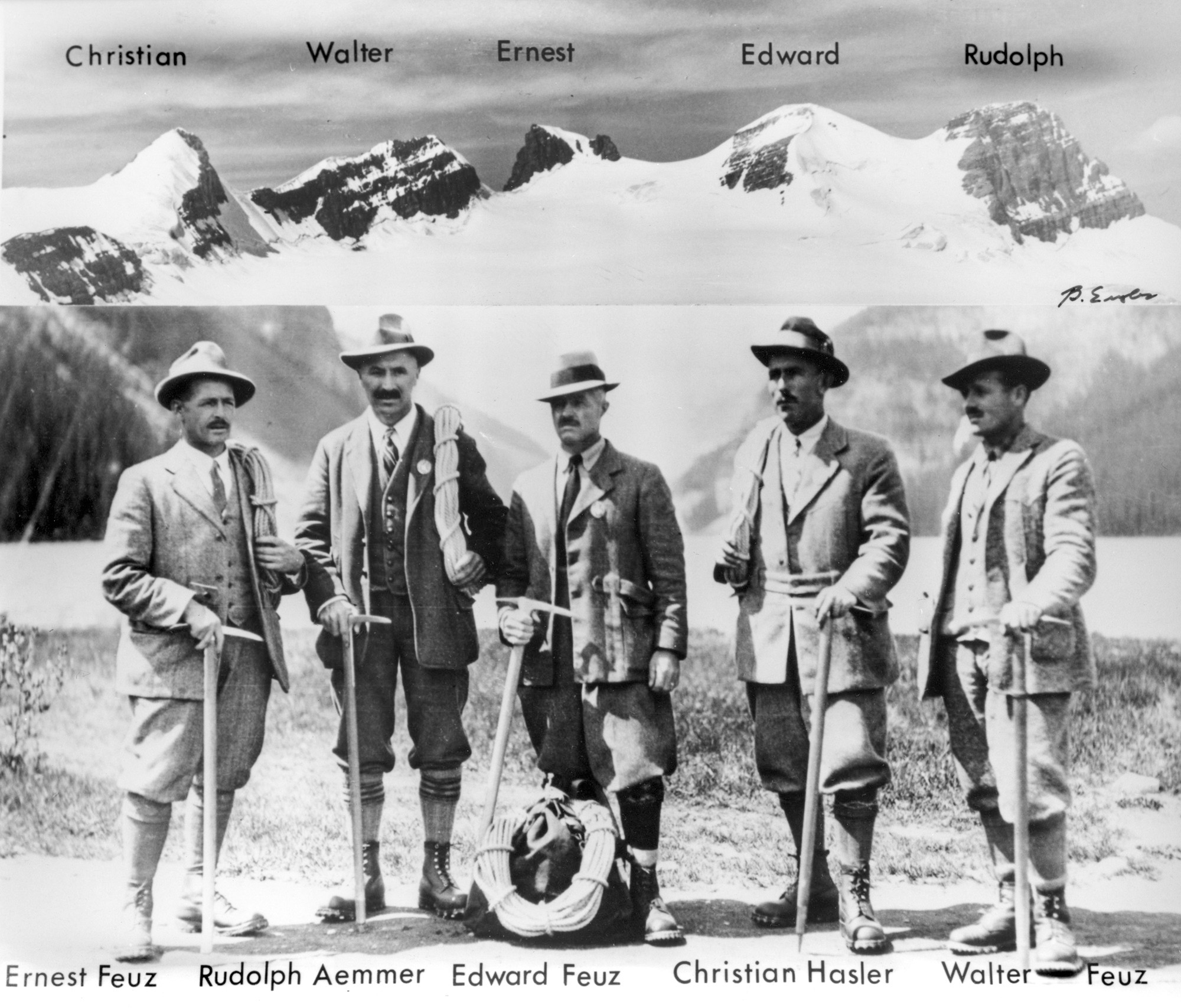 1900年頃、カナダ太平洋鉄道(CPR)は、観光客に周囲にそびえる数多の高峰を案内する目的で、たくさんのスイス人山岳ガイドを雇い入れた。