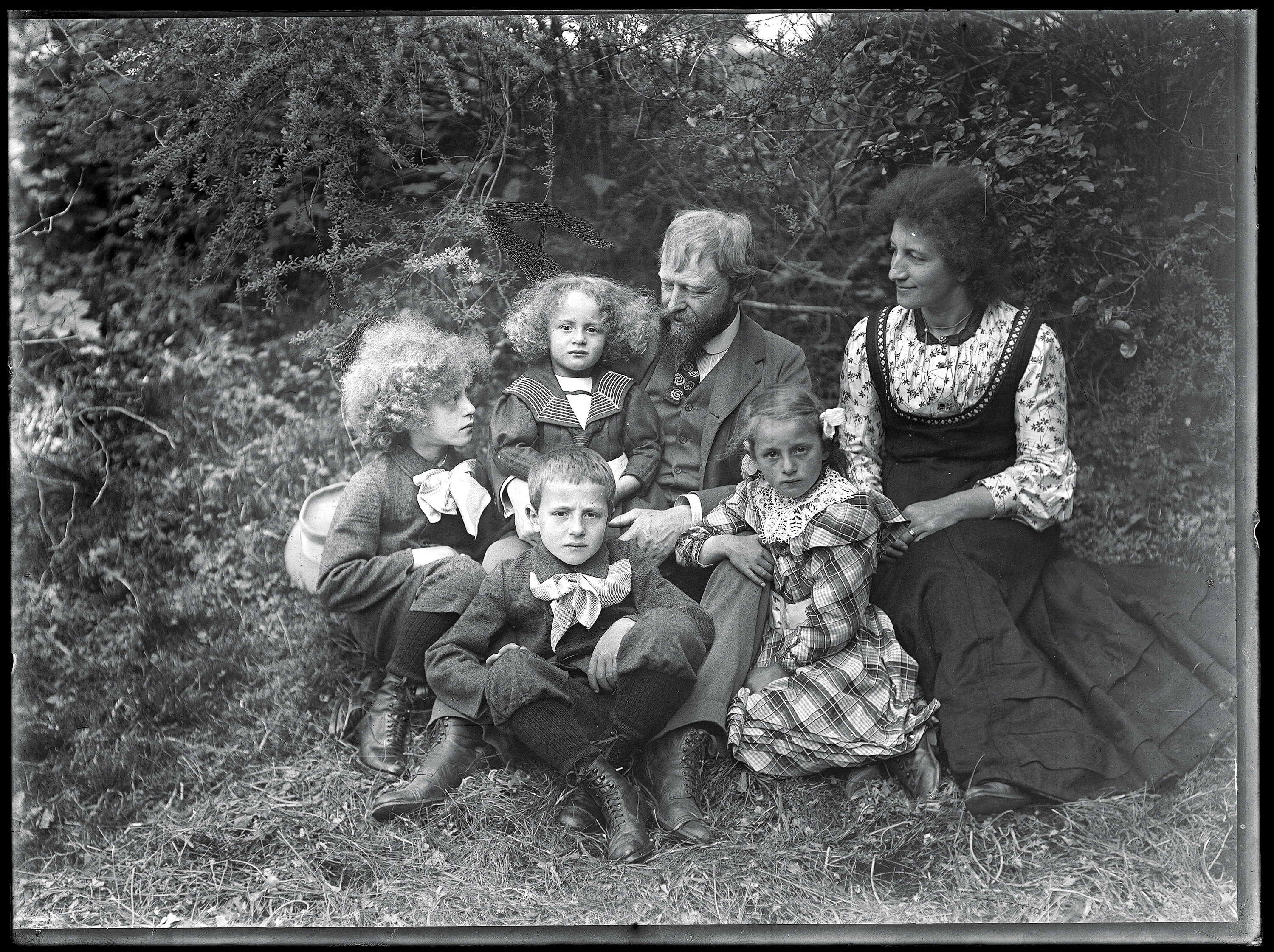 ジョバンニとアンネッタ・ジャコメッティ。4人の子ども(左からアルベルト、ディエゴ、ブルーノ、オッティリア)と一緒に、1909年
