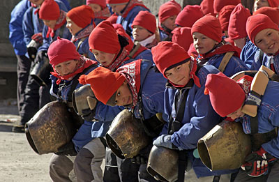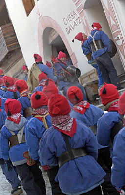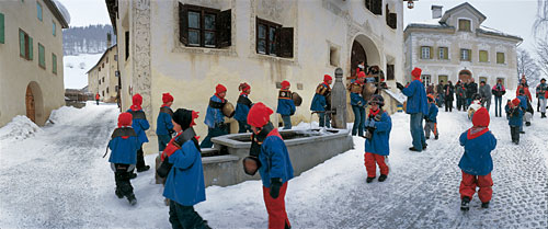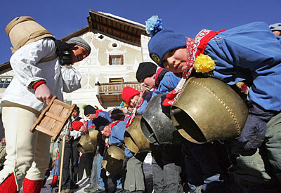 「カランダマルツ ( Chalandamarz ) は」スイスの東南部、エンガディン地方のロマンシュ語圏に伝わる伝統ある風習だ。この時節にはローマ時代がよみがえる。3月1日 ( カランダ=1日、マルツ=3月 ) は新しい年がスタートする日。重そうなベルを持った少年たちが鞭を鳴らしながら通りを練り歩き、邪悪な霊を追い払う。