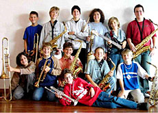 サックスフォン、トロンボーン、トランペット、ドラムス、ベースギターを12人のキッズが奏でる。