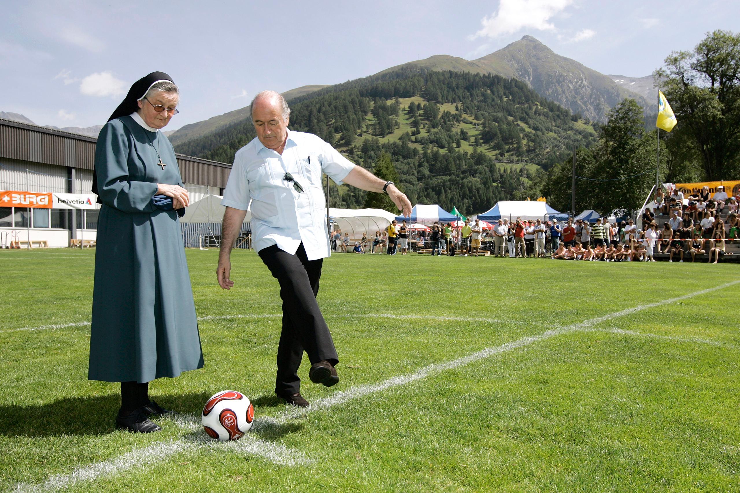 会長としてFIFAを率いた17年間、国のトップたちと親しげに言葉を交わしていたり、国の民族衣装をまとっていたり、修道女にボールの蹴り方を教えていたりしても、ブラッター氏がカメラの存在を忘れることは無かった。