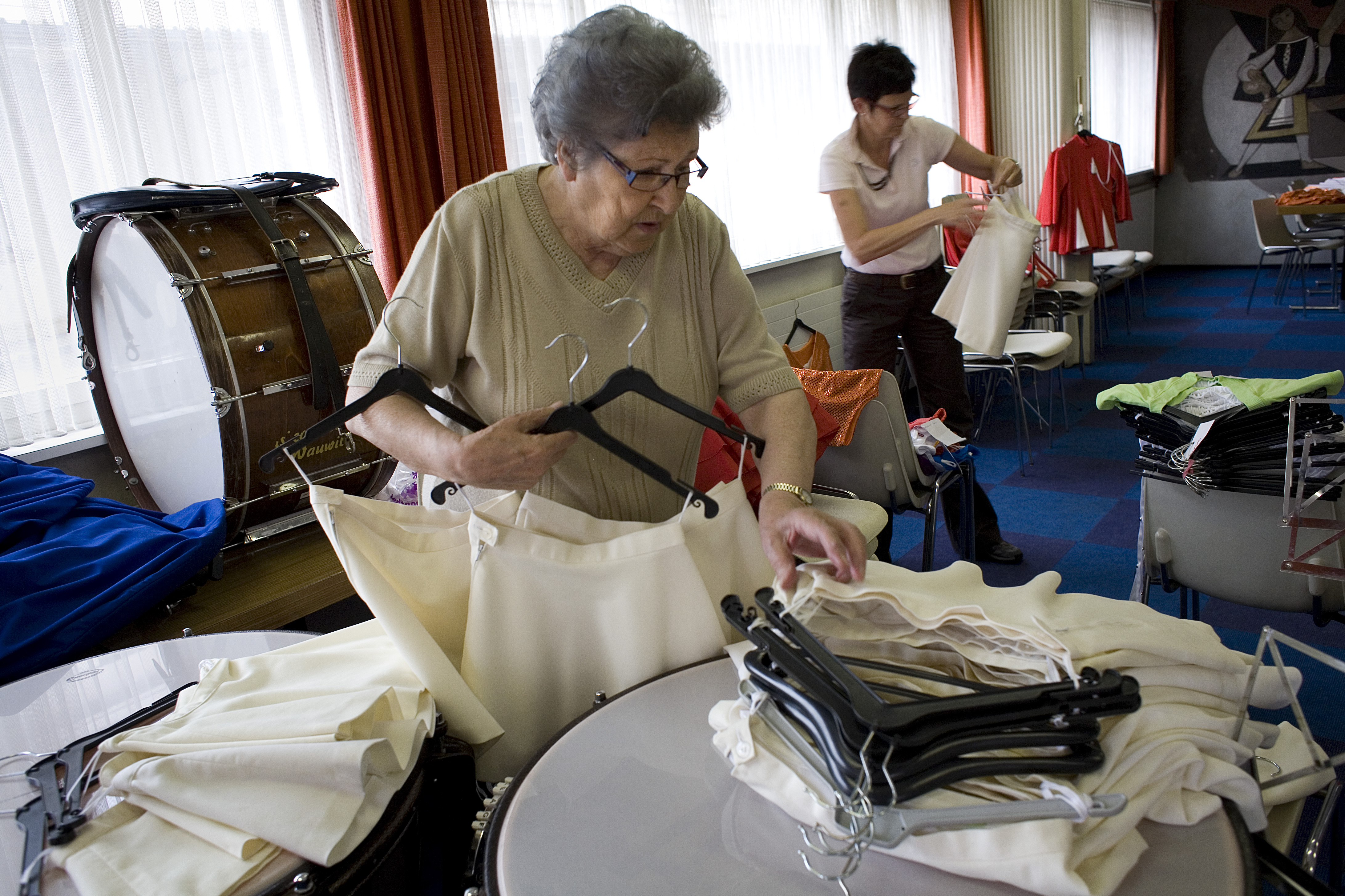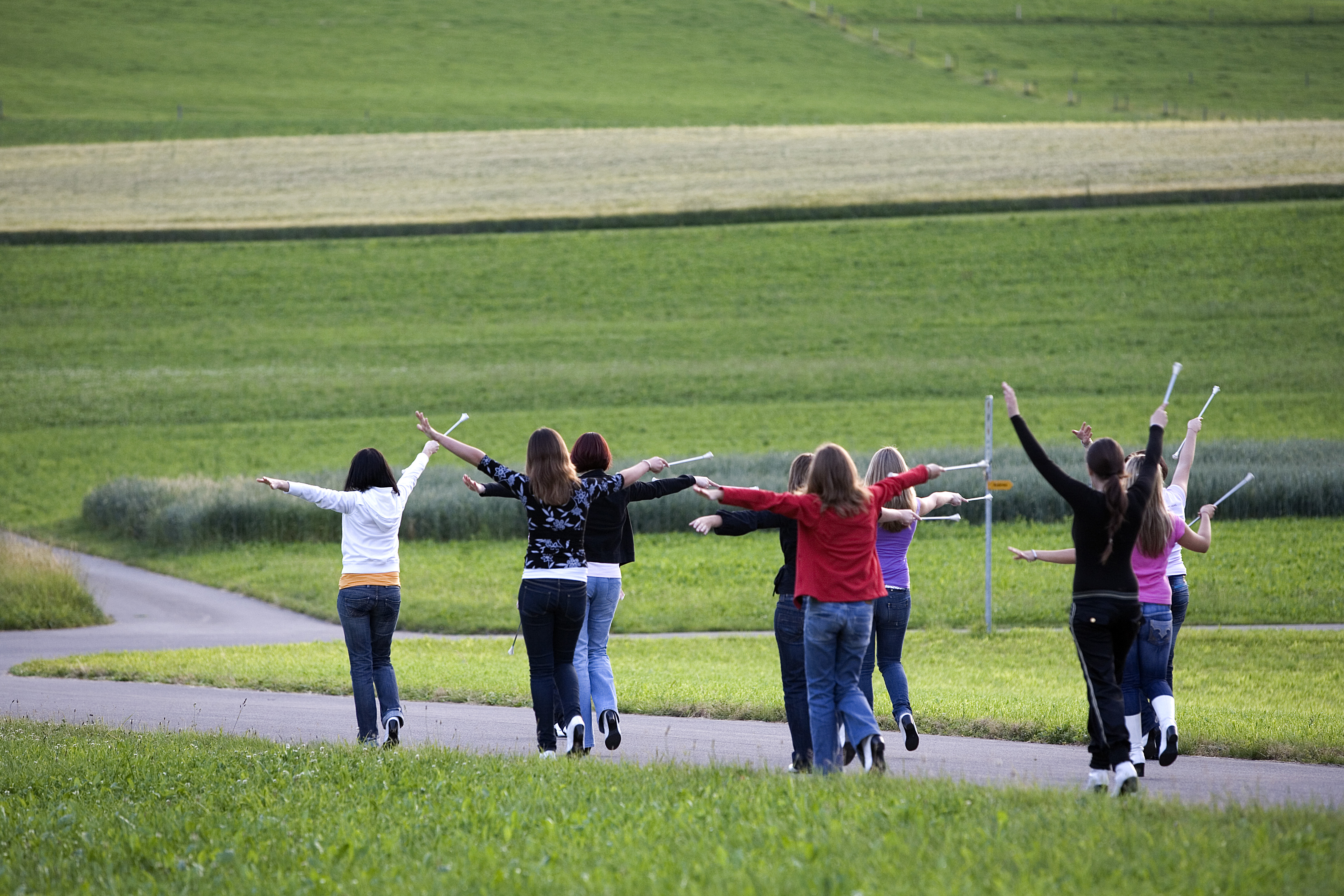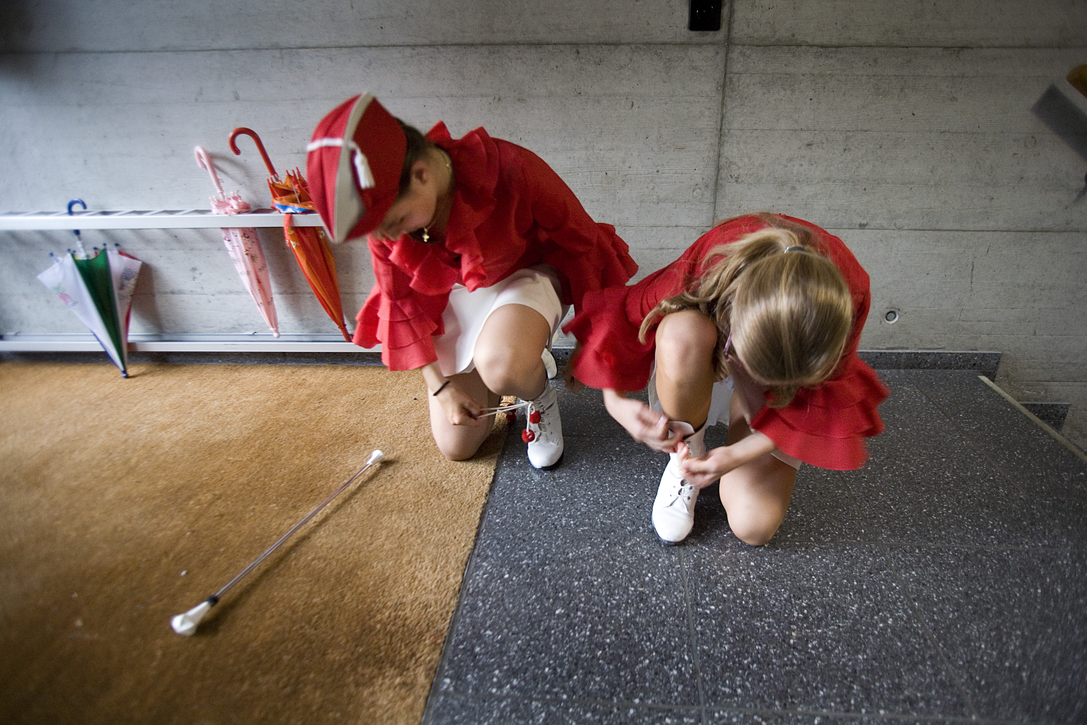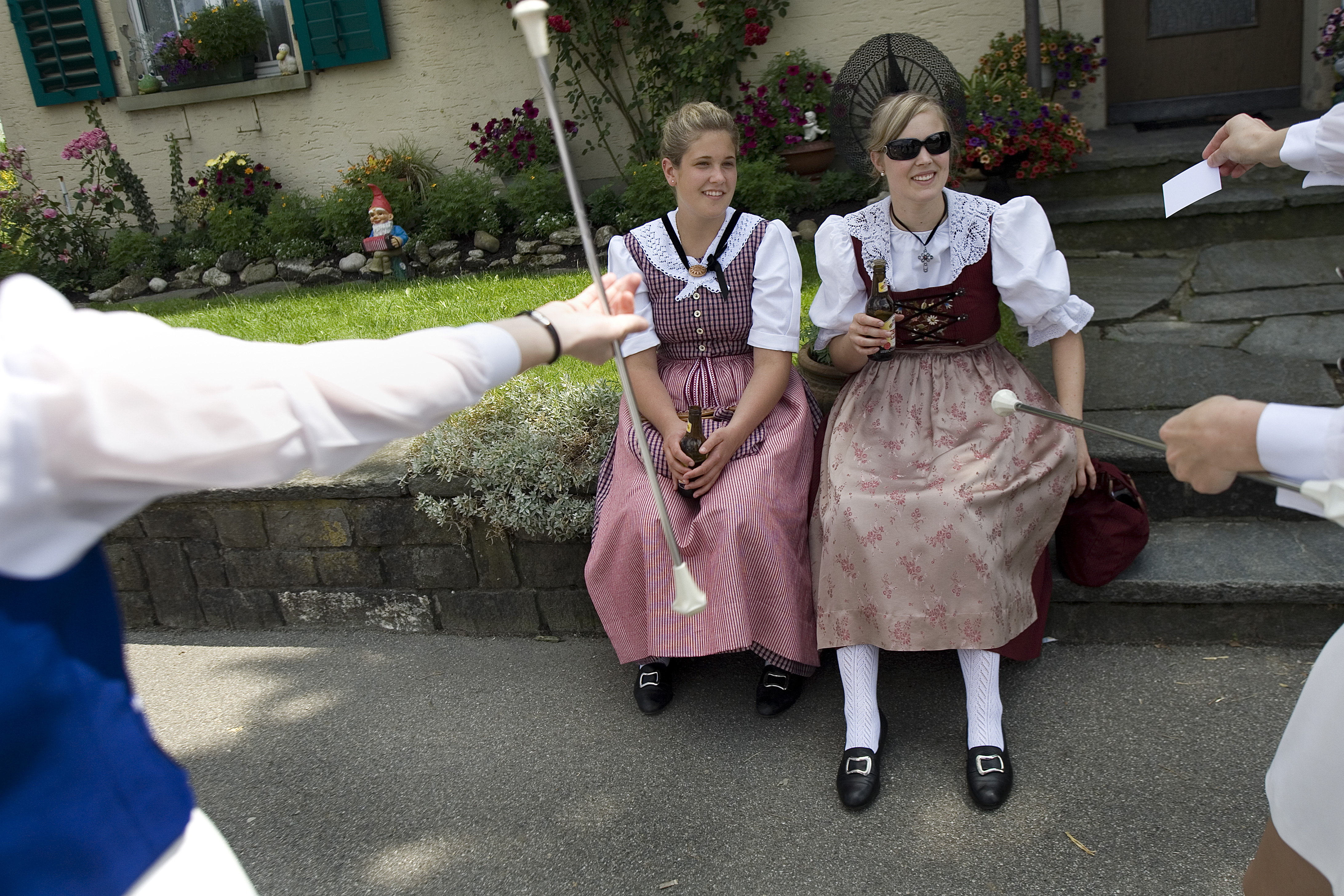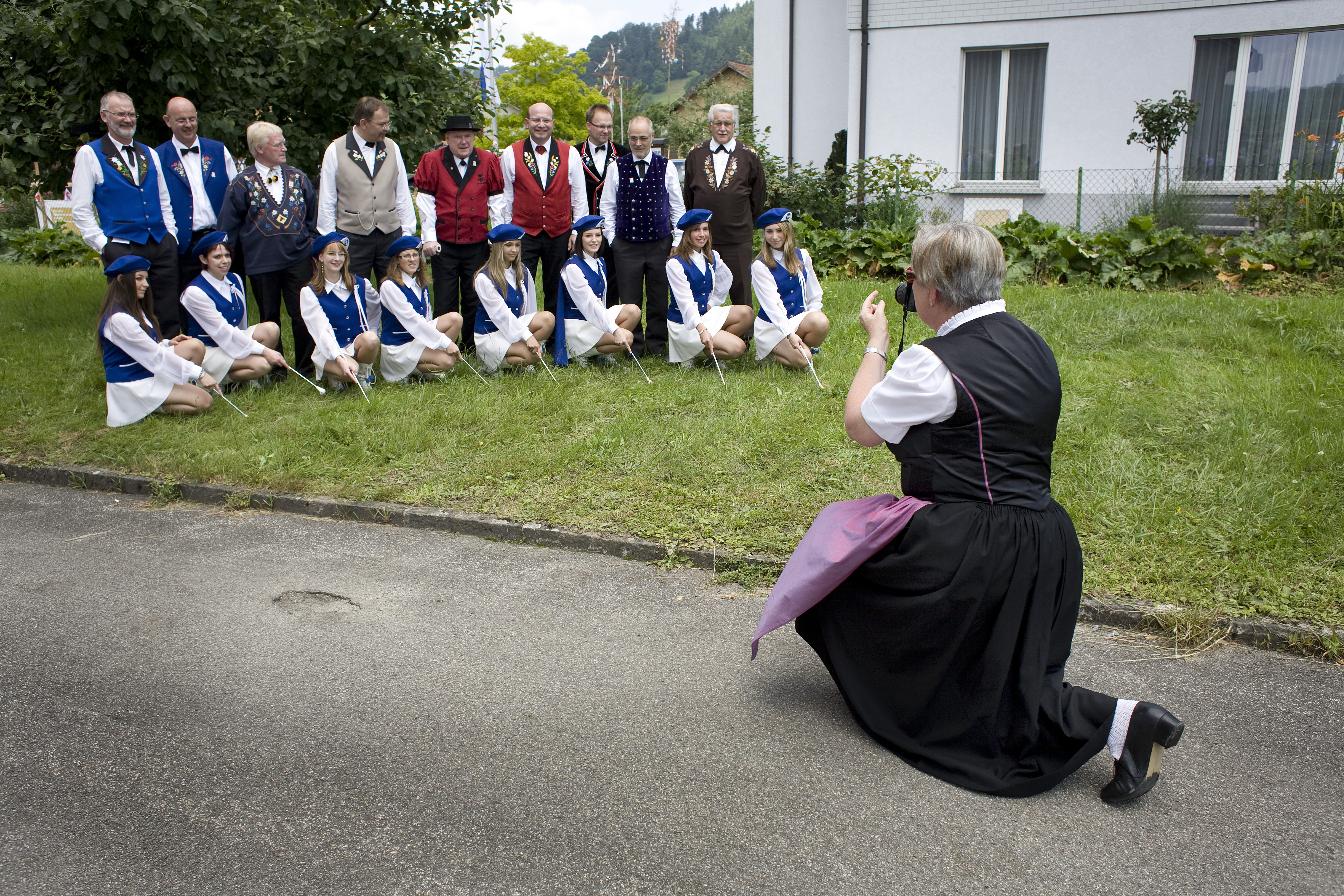 バトン隊「ヴァウヴィル ( Wauwil ) 」は1978年の創立。中央スイス唯一のバトン隊だ。最年長はイダ・ゲルバーさん。創立メンバーでもあり、隊のコスチュームを30年以上にわたってデザインし続けている。1年に2回新しい衣装を作り、各年齢グループに配布する。1年のハイライトは「夏バンザイ ( viva l’estate ) 」と題された夏のショー。その前が最も忙しい時期だ ( 全写真:トーマス・ケルン/swissinfo )