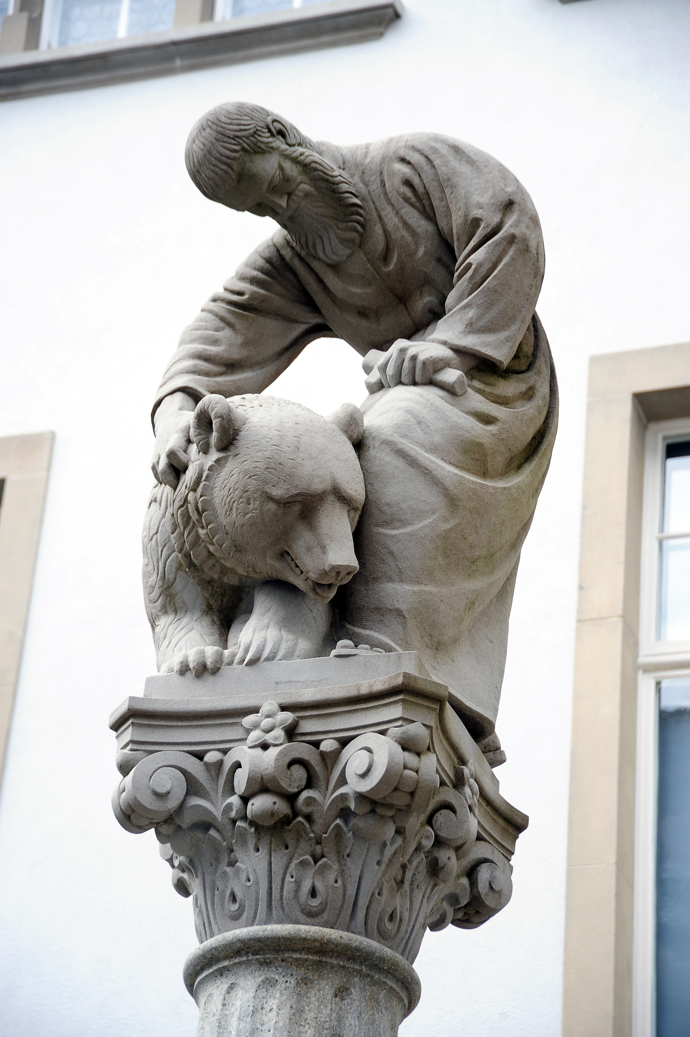 伝説はほかにもある。ガルスは熊を調教し、焚(た)き木を持ってこさせ、熊はご褒美にパンをもらった。この話は9世紀の美しい象牙のレリーフに描かれており、ガルスの伝説を描写したものとしては最も古い。レリーフは現在、ザンクト・ガレン修道院図書館の特別展示で見ることができる。ちなみに、ザンクト・ガレン市の紋章には、この伝説の熊がデザインされている。