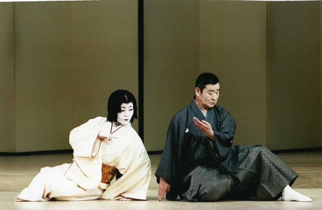 上演されたのは、「古道成寺」、「雪」、「善知鳥(うとう)」の3曲だ。第2曲目の「雪」は、雪が降り積もる静かな夜につれない男を恋い慕い、思い出にふけり眠れぬ夜を過ごす女が、その煩悩を断ち切るために髪を切り、出家を決意するという話だ。