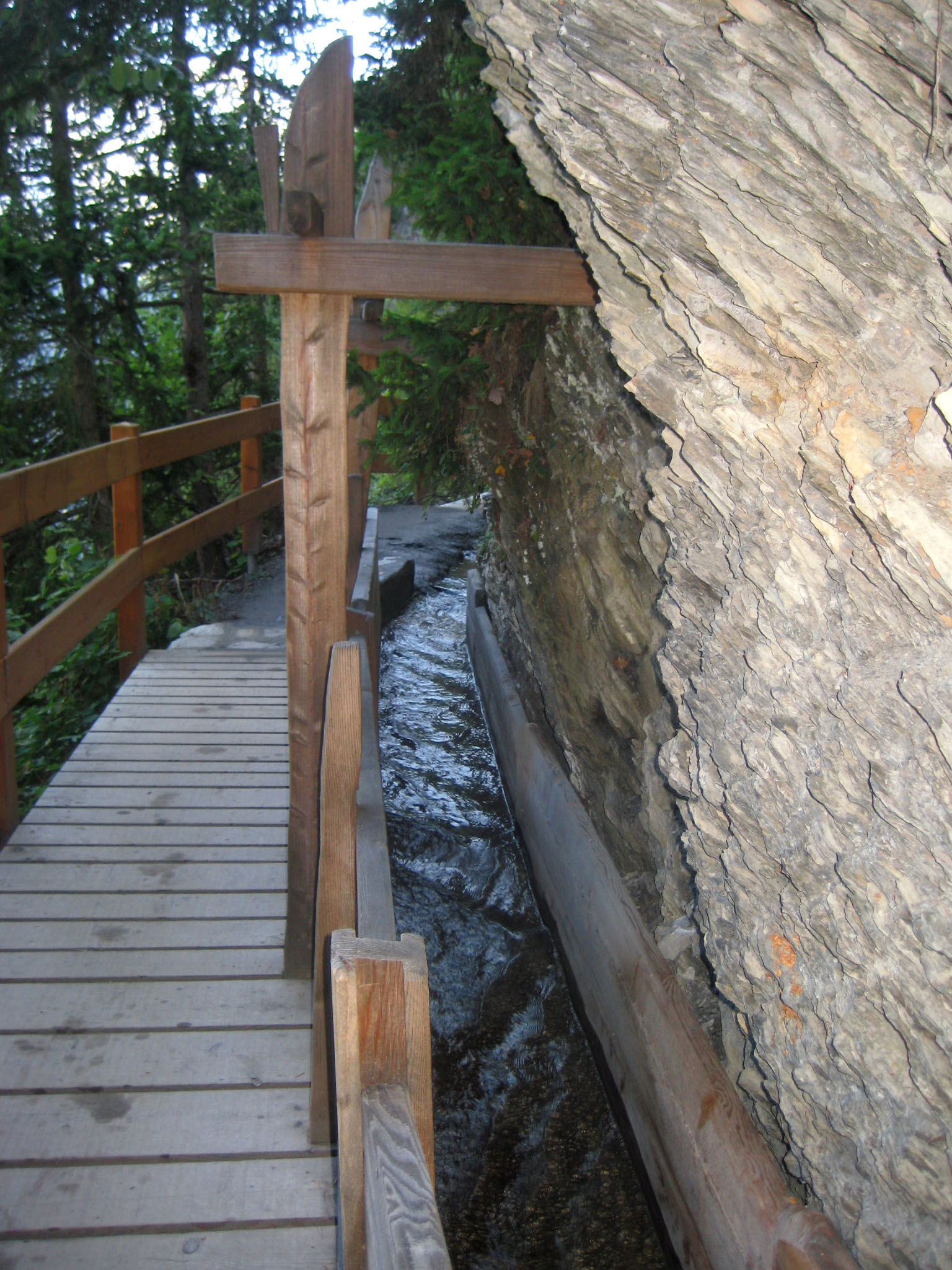 そして、特にヴァレー州のビスが前面に打ち出すべき特殊性は二つある。一つは崖に取り付けられた木製のビスの作製技術、美的側面、実用性だ。こうした、釘を一本も使わず、崖に打ち込まれた木製の水路はヴァレー州にしかない。