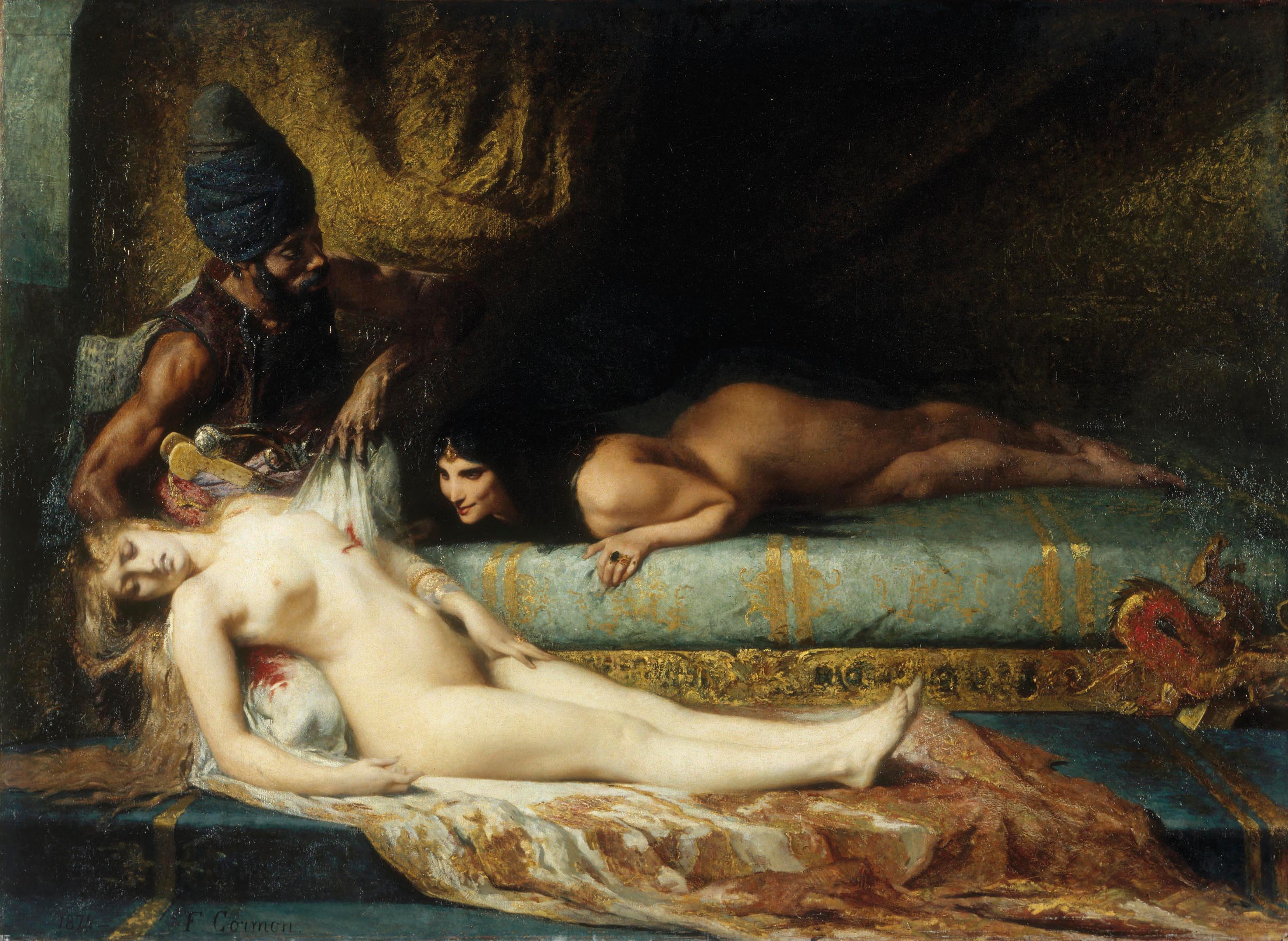 嫉妬 ( 羨望 ) のカテゴリーの作品「ハーレムの嫉妬」、フェルナンド・コルモン作、1874年、油絵、157x217 cm