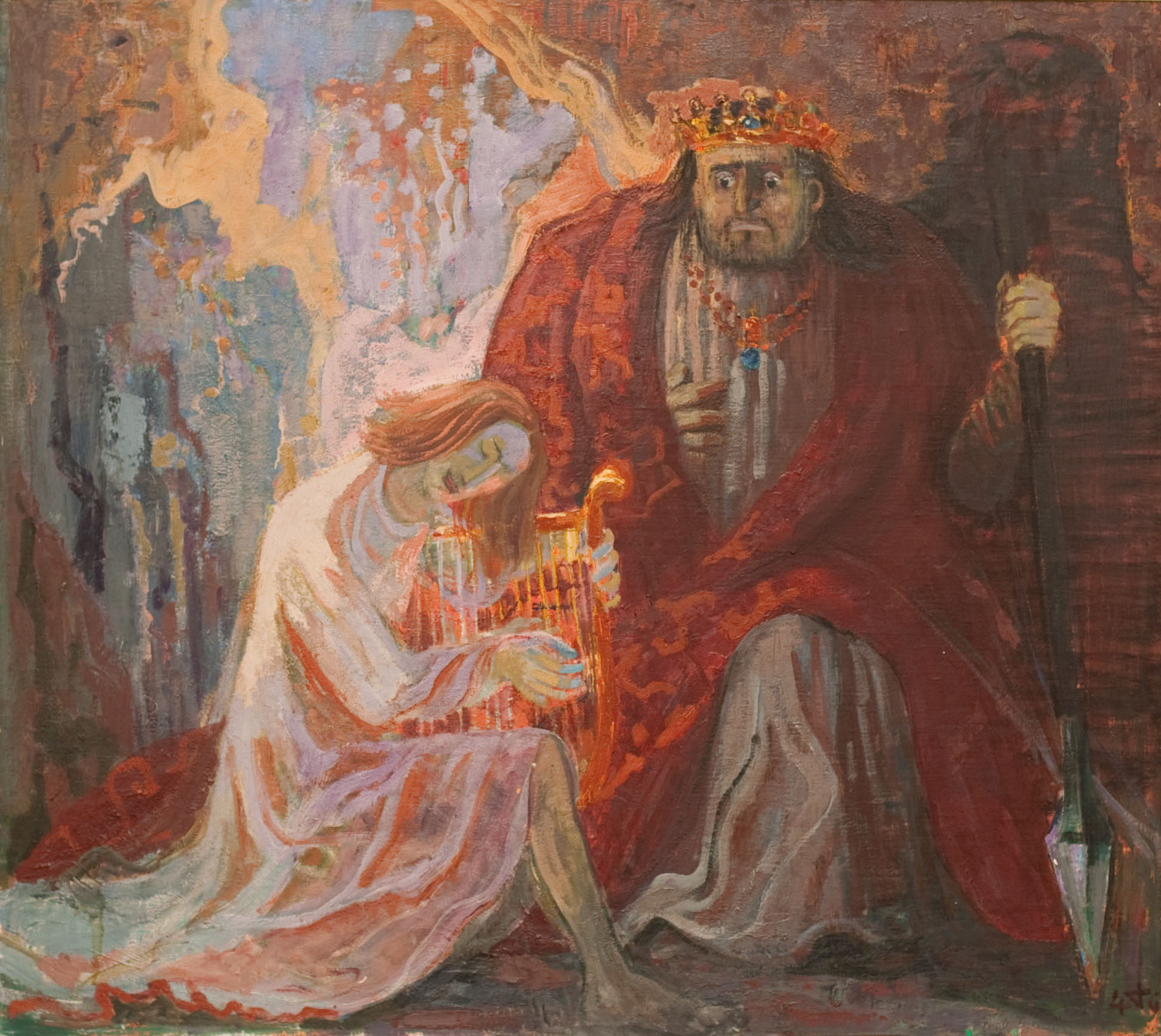 嫉妬 ( 羨望 ) のカテゴリーの作品「イスラエル初代の王サウルとダビッドI」、オットー・ディックス作、1946年、105 x 116 cm