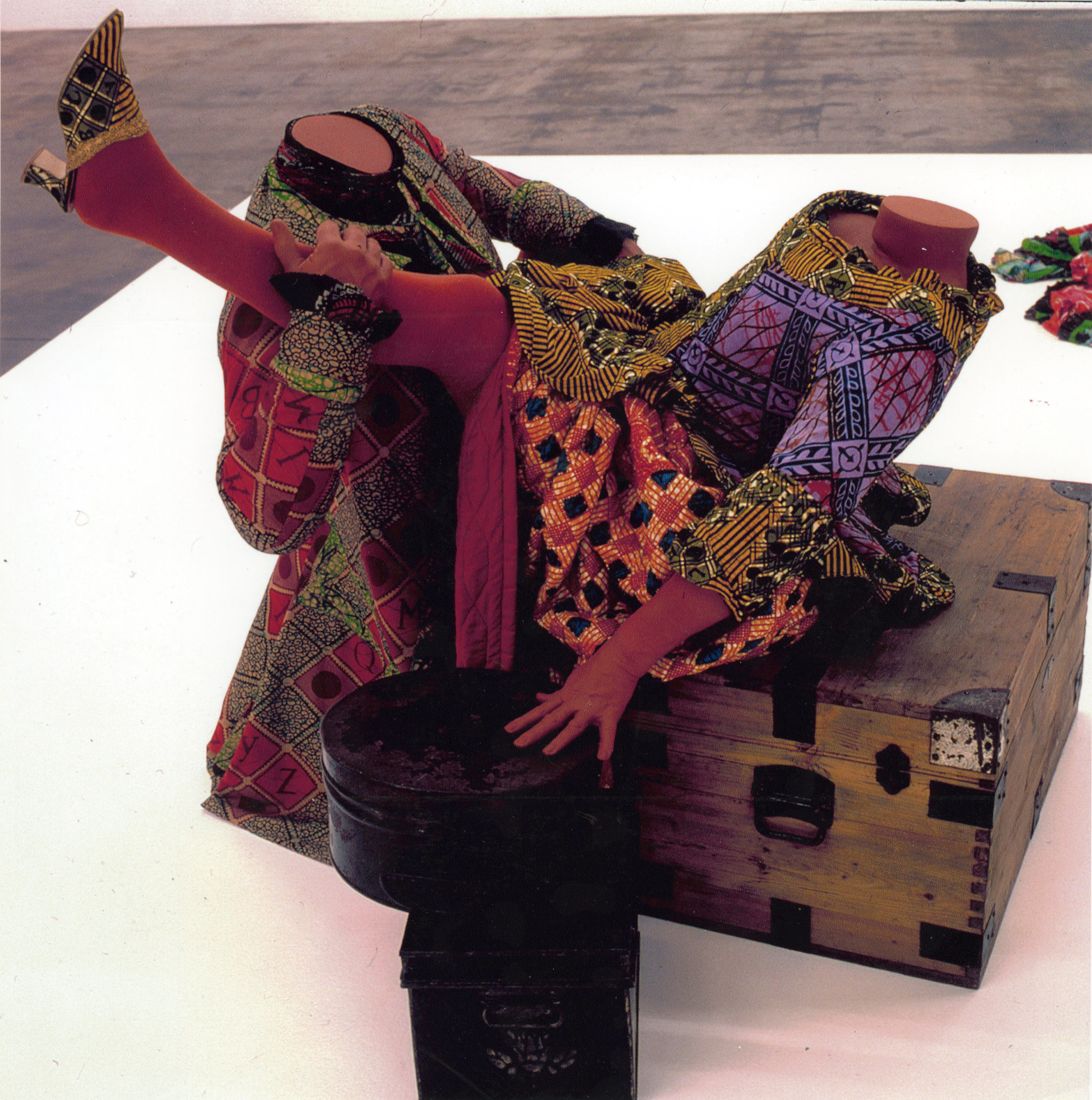 色欲のカテゴリーの作品「足を上にあげた女性」、インカ・ショニバーレ作、2002年、布製の人形、127 x 149 x 117 cm