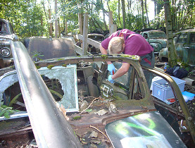 車の墓場で発掘作業
