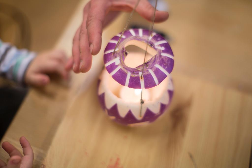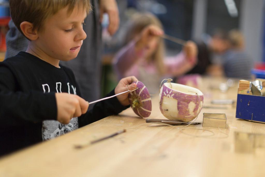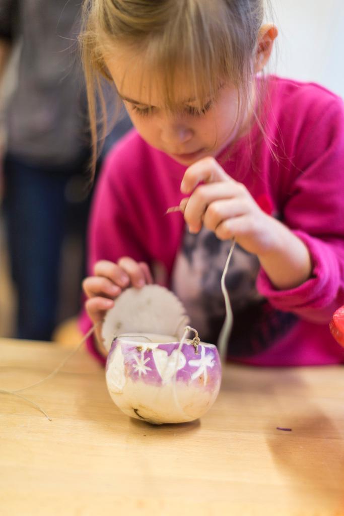 白と紫の色をした秋カブの中身をスプーンなどでくり抜き、先の尖ったナイフでカブの外側を装飾する。太陽、月、星などのモチーフを彫る子供たちもいれば、自分の名前を彫る子供たちもいる。こうしてそれぞれにユニークな「カブちょうちん」が出来上がる。