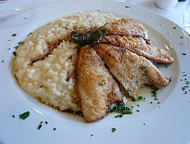 それに、シックなレストランなのに、フルコースを食べる必要はまったくなく、リゾットと地元のおいしい白ワインだけで済ませられる軽さが気持ちよい。ゆったりくつろいで、おいしく、しかも決して高くない、旅人にはうれしいレストランだ。