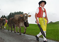 アッペンツェルでは牛追いがお正月やクリスマスより重要な年間行事となっている。夏前には山へ牛を移動し冬になる前にふもとの村に連れ戻す牛追いでは、牛の品評会もある。牛が移動するときは、牛の頭に花輪を飾り、大きなカウベルを首に付ける。牛飼いも派手な衣装でおめかしをしてヨーデルを歌いながら町を行進するのである。牧草地を求めて移動する生活に密着した儀式を