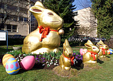 キリストの復活を祝うイースター。スイスでは春の訪れを告げるイースターの時期になると、うさぎのキャラクターが街に氾濫する。特にチョコレート大手のリンツが期間限定で販売する金紙で包まれたうさぎの人気は格別である。